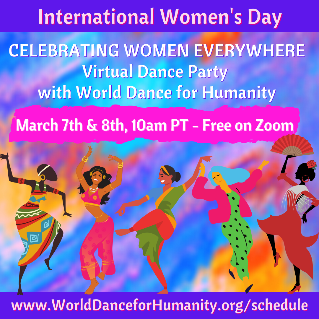 March 7th and 8th, 10:00am, free on Zoom! Info: http://worlddanceforhumanity.org/schedule/