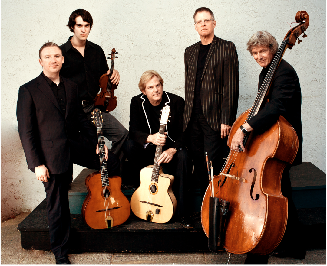 John Jorgenson Quintet creates a unique musical experience that equally enthralls the most discerning and the casual music fan. The ensemble was originally formed in 2004 for the release of “Franco-American Swing”. The Quintet is comprised of five distinguished musicians: Jorgenson (acoustic guitar, bouzouki, clarinet, vocals), Casey Driscoll (jazz violin), Rory Hoffman (guitar/piano/accordion), Simon Planting (bass), and Rick Reed (percussion).