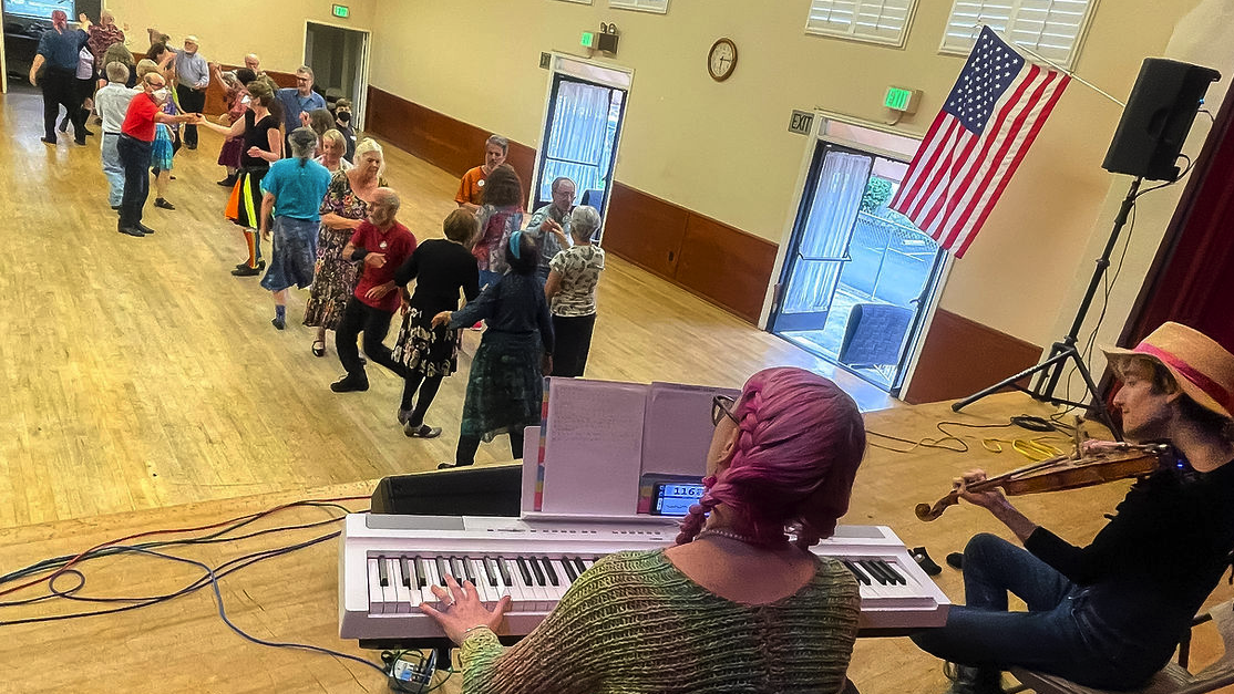 Join us for an unforgettable evening of traditional dance and live music in Santa Barbara! Our experienced callers and talented musicians guarantee a lively contra dance night filled with laughter, socializing, and fun times. The Carrillo Ballroom is beautiful, air-conditioned, and the sprung floor is a delight, easy on the body. Whether you’re new in town or a seasoned dancer, this event is perfect for anyone looking to enjoy a night of social dancing to live music.
