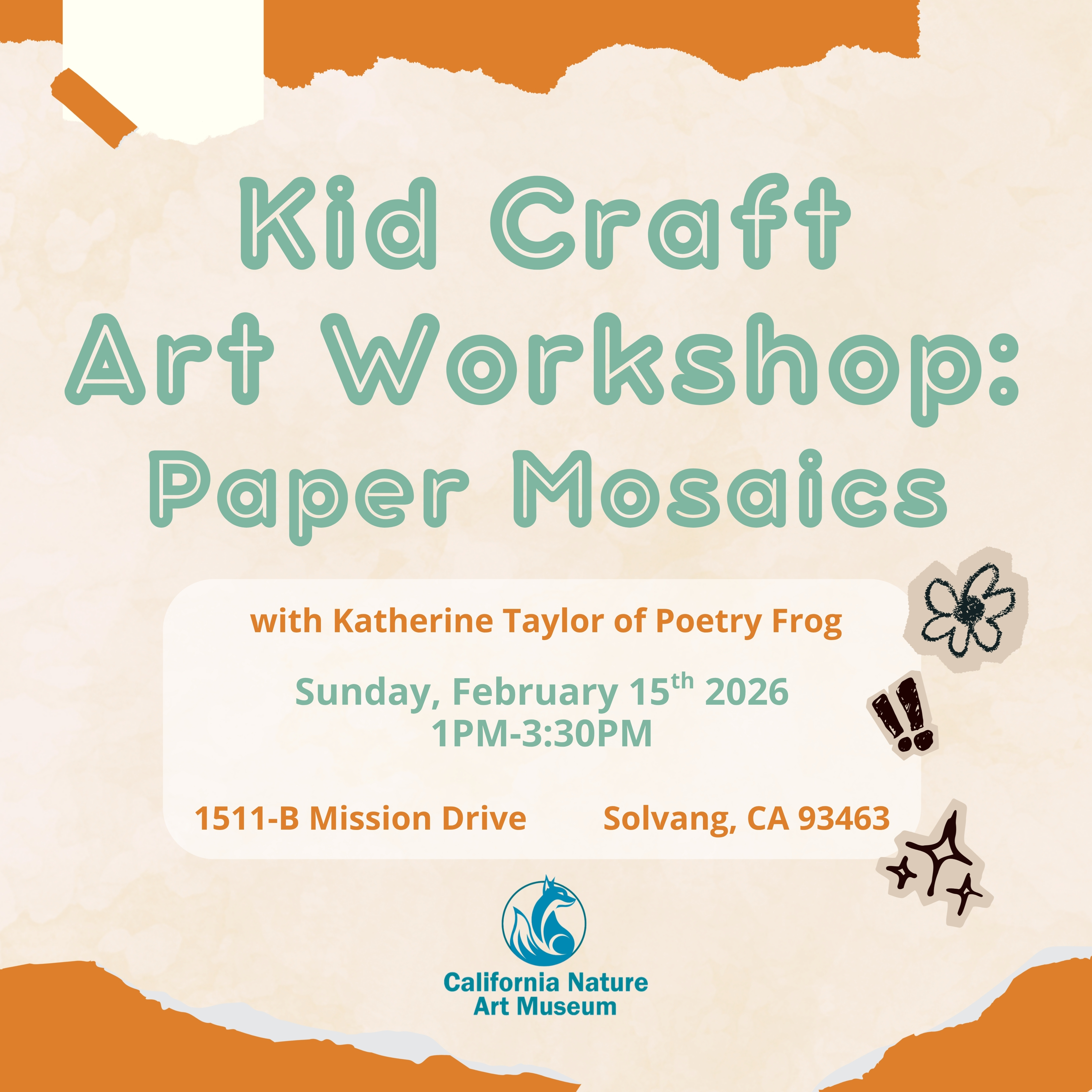 Join CalNAM and Artist Katherine Taylor of Poetry Frog for a paper mosaics family-friendly workshop on Thursday, February 15th, 2026, from 1PM-3:30PM.