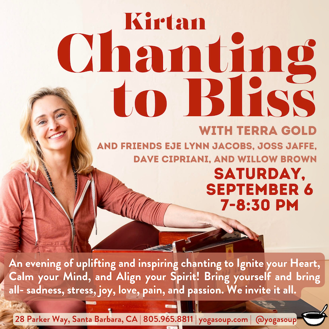 Join Terra Gold and friends Eje Lynn Jacobs, Joss Jaffe, Dave Cipriani, and Willow Brown for an evening of uplifting and inspiring chanting to Ignite your Heart, Calm your Mind, and Align your Spirit!