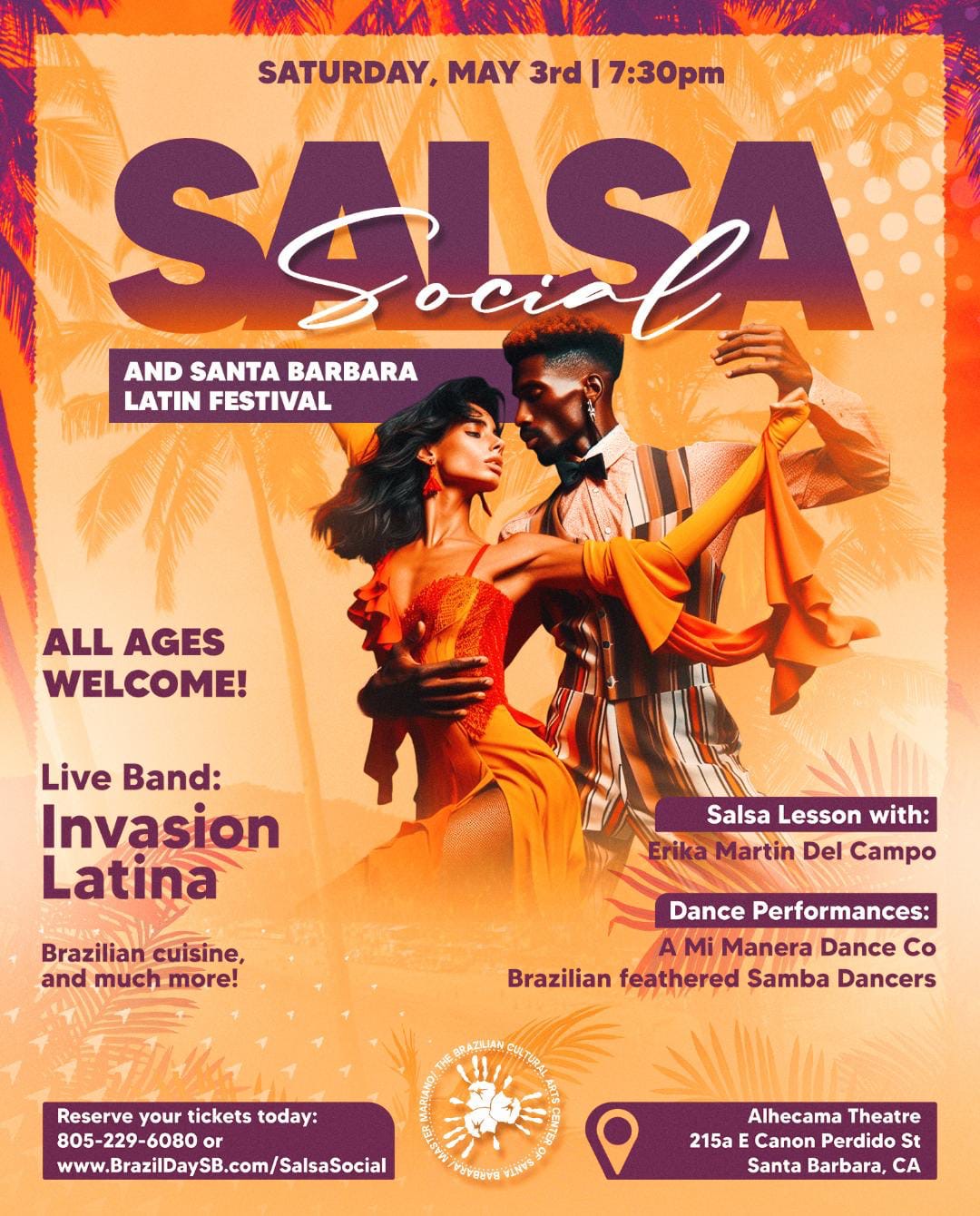 The Brazilian Cultural Arts Center of Santa Barbara (BCACSB) is thrilled to announce the first-ever Santa Barbara Latin Festival and Salsa Social, taking place on Saturday, May 3, 2025, at 7:30 p.m. at the historic Alhecama Theatre in downtown Santa Barbara. Experience the best of Latin culture for an exciting evening of music, dance, cuisine, and community celebration.