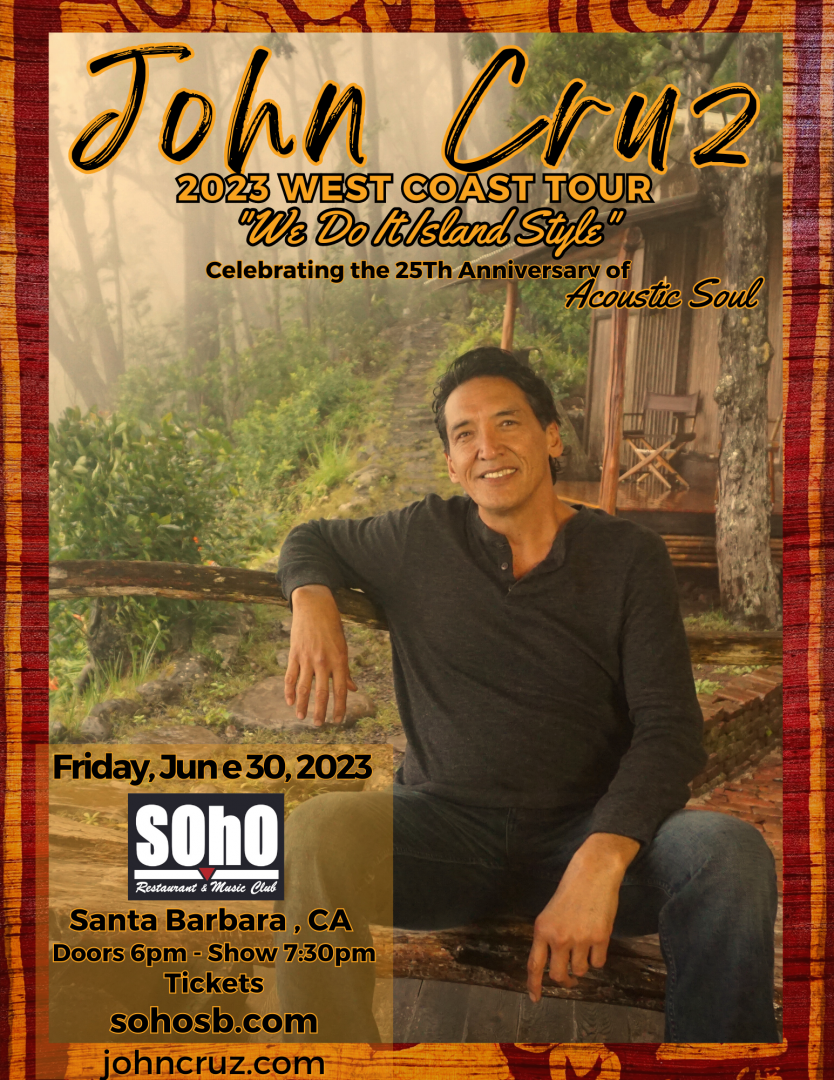 This concert is part of Cruz’s first tour outside of Hawaii in over four years. Cruz has made clear, however, that he has no intention of fading away. He sold out venues across the islands during his Acoustic Soul 25th Anniversary Tour in 2022 and established a Maui concert residency that has earned rave reviews for over 18 months and counting. In addition, Cruz recently captured his latest Nā Hōkū Hanohano award with his single, “It’s Time to Build A Bridge,” being voted the 2022 Music Video of the Year.
