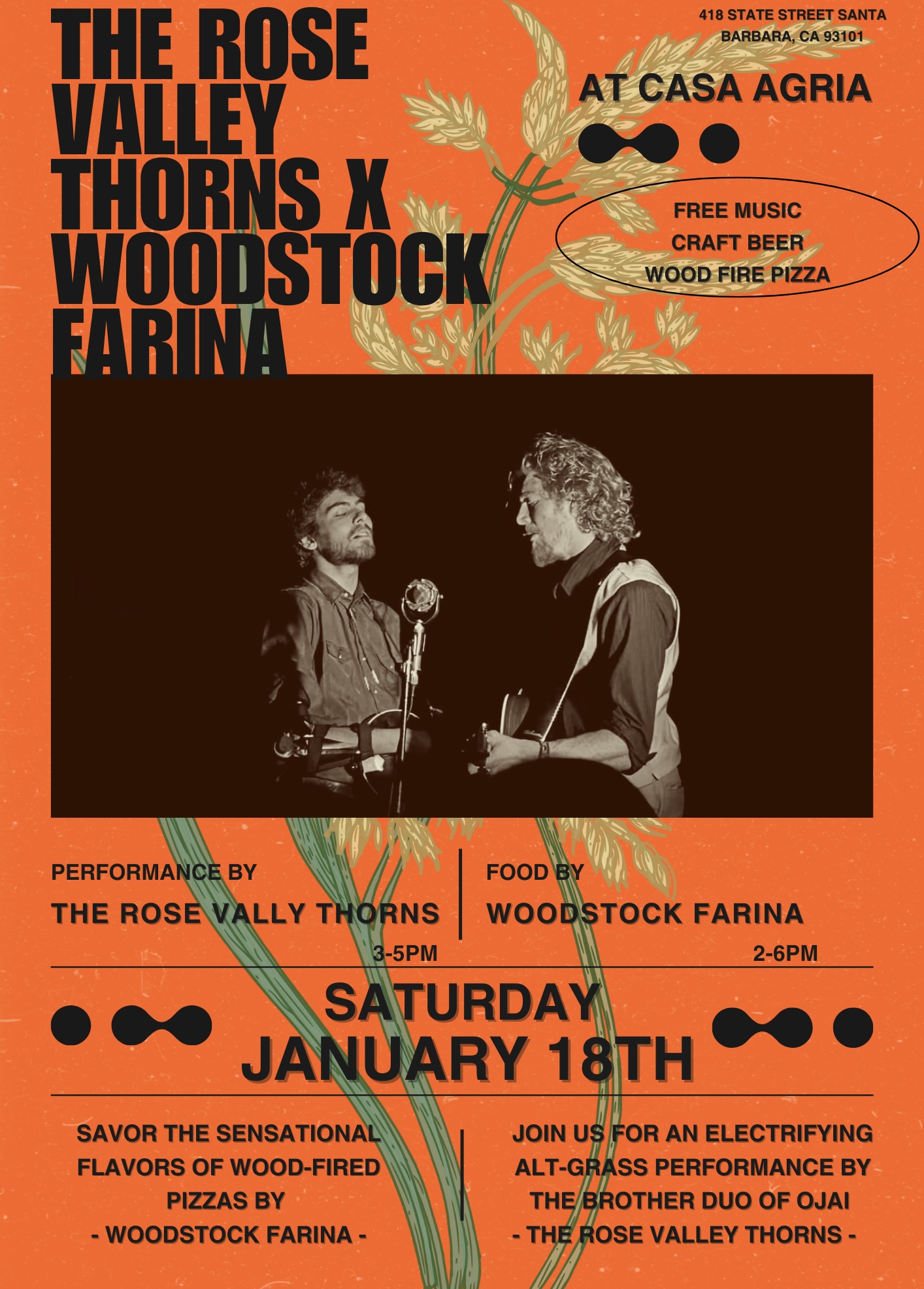 Groove to the tunes of The Rose Valley Thorns from 3-5 while savoring the sensational flavors of wood-fired pizzas by Woodstock Farina from 2-6.