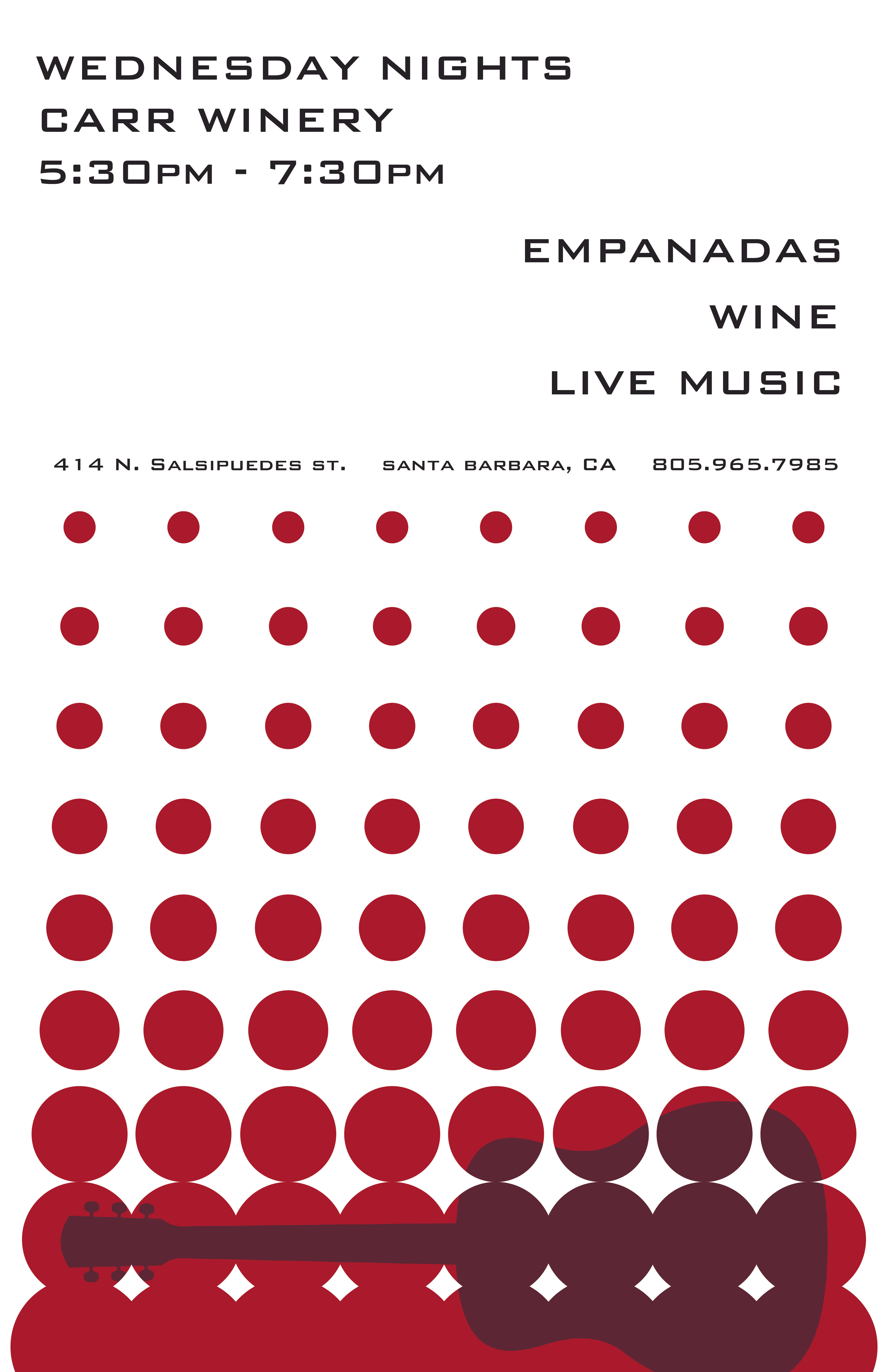 Grab your friends and head over to Carr Winery in downtown Santa Barbara for Wednesday nights in the barrel room! We’ll have live music by Brian Kinsella and Jimmy Rankin, wines by the glass, and empanadas from Buena Onda available for delivery.