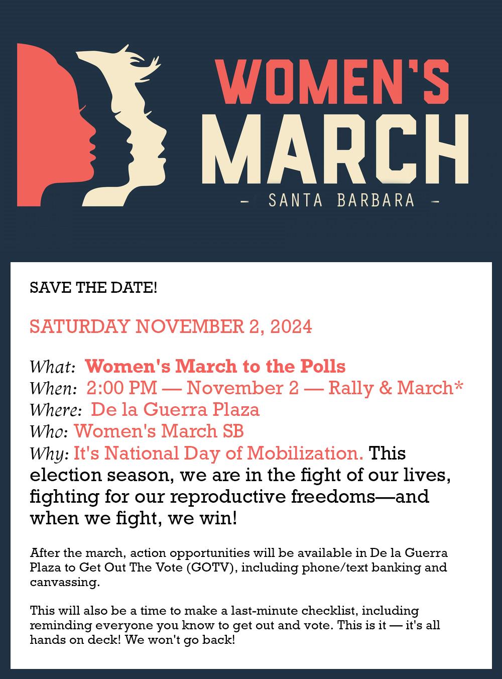 Marching Forward – March and Rally Saturday-Nov. 2- De la Guerra Plaza