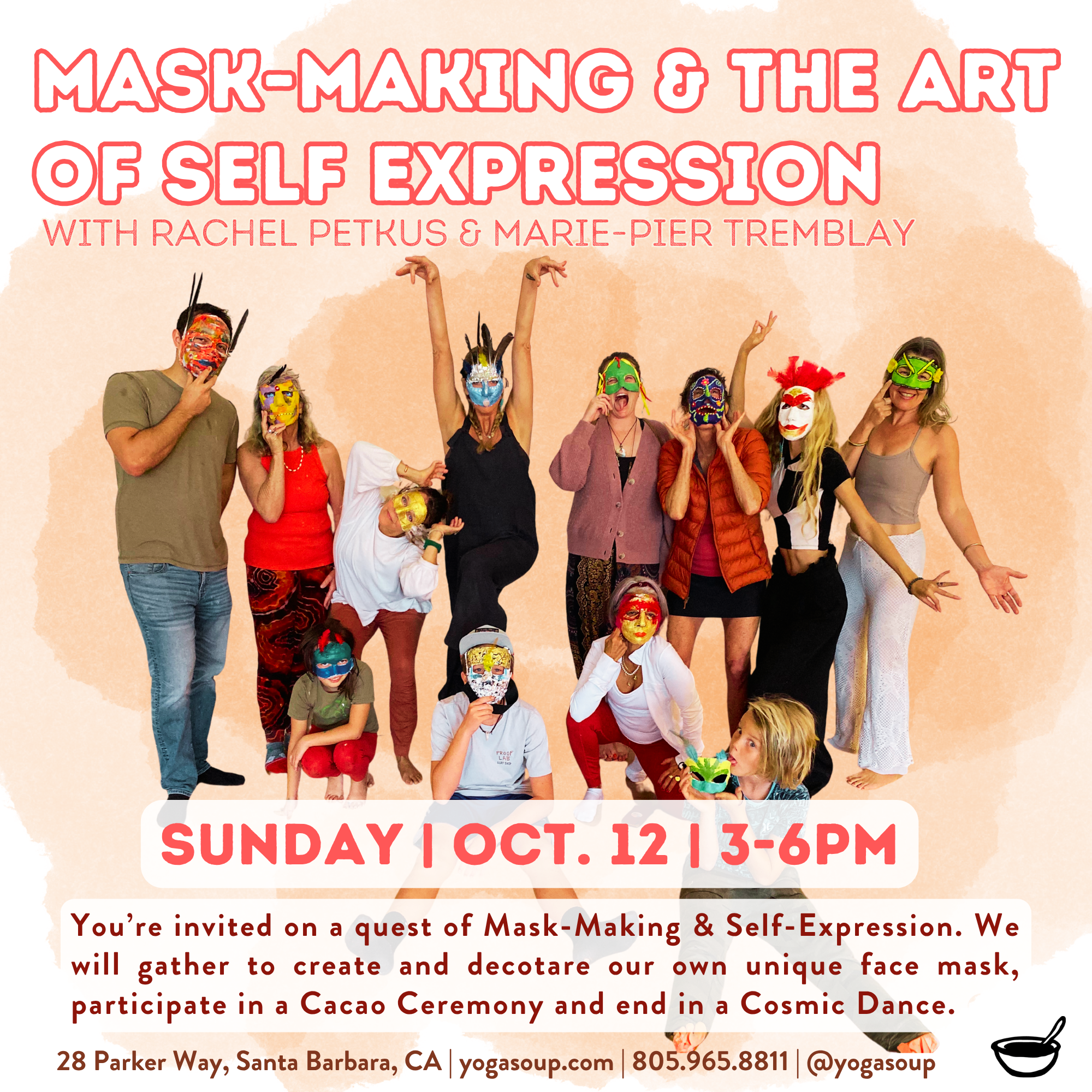 We will gather to create our own face masks, decorate them, participate in a Cacao Ceremony and end in a Cosmic Dance!