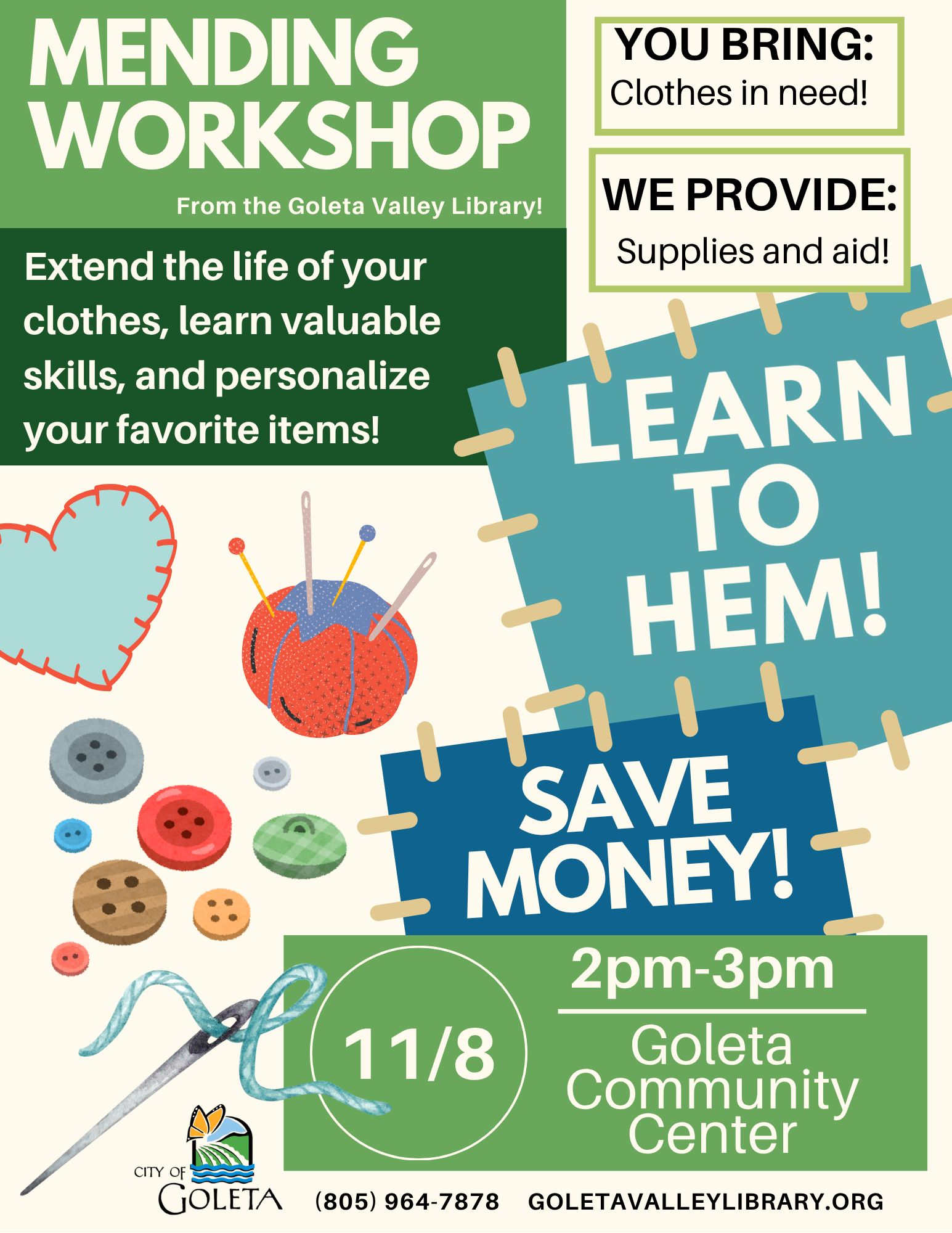 Come to the Goleta Community Center to learn new skills and save money!