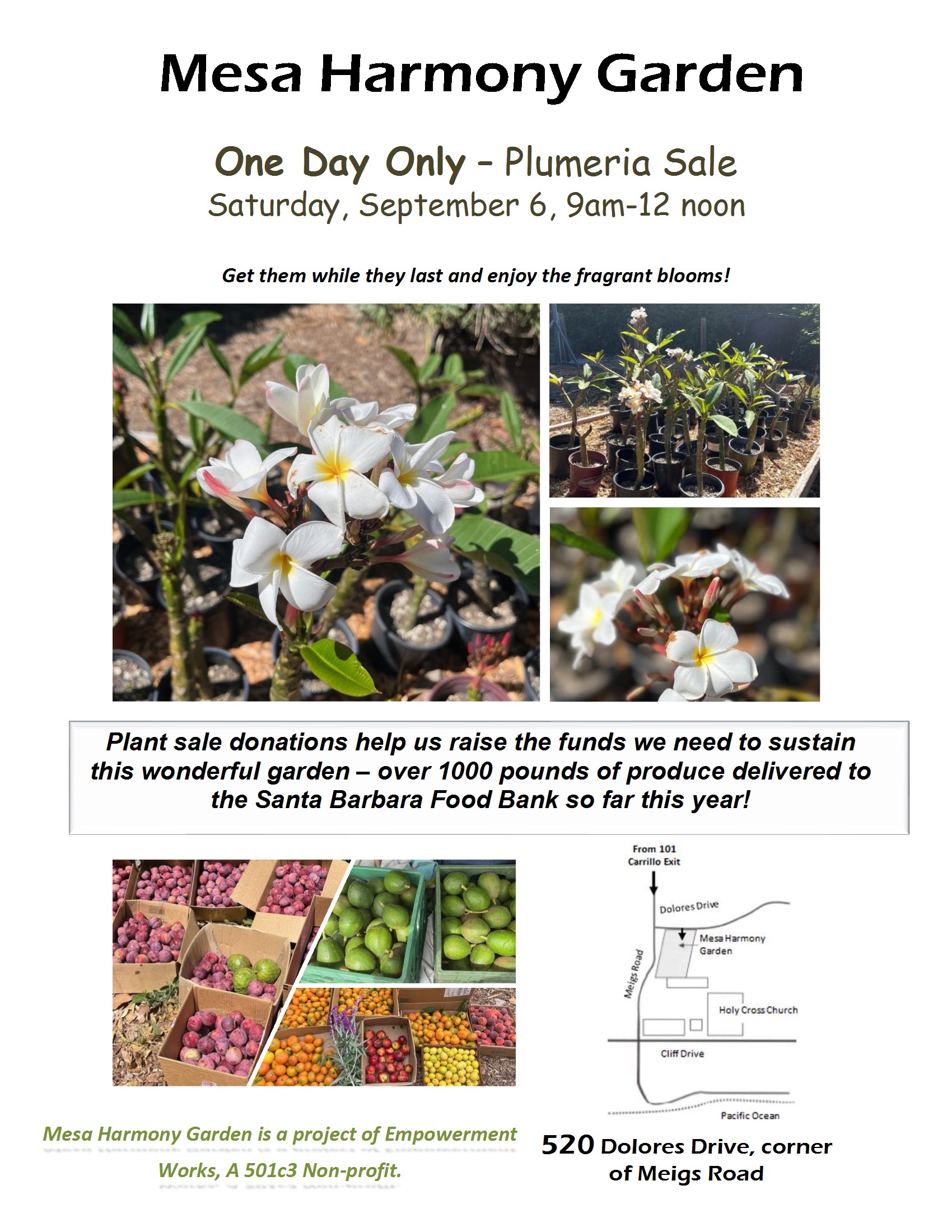 Mesa Harmony Garden is offering a “One Day Only” Plumeria Sale on Saturday, September 6, 9am to 12noon.