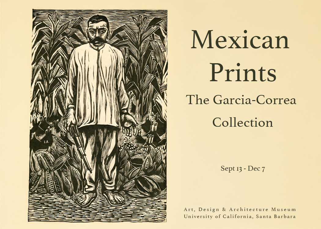 Mexican Prints is organized by the Art, Design & Architecture Museum and is curated by Ana Briz, AD&A Museum Assistant Director and Curator of Exhibitions, with support from Curatorial Assistants Claudia Grego March and Kaitlin Zarembinski. The exhibition is made possible thanks to the generous support of Gil Garcia and Marti Correa de Garcia, the AD&A Museum Council, and the UCSB Division of Humanities and Fine Arts.