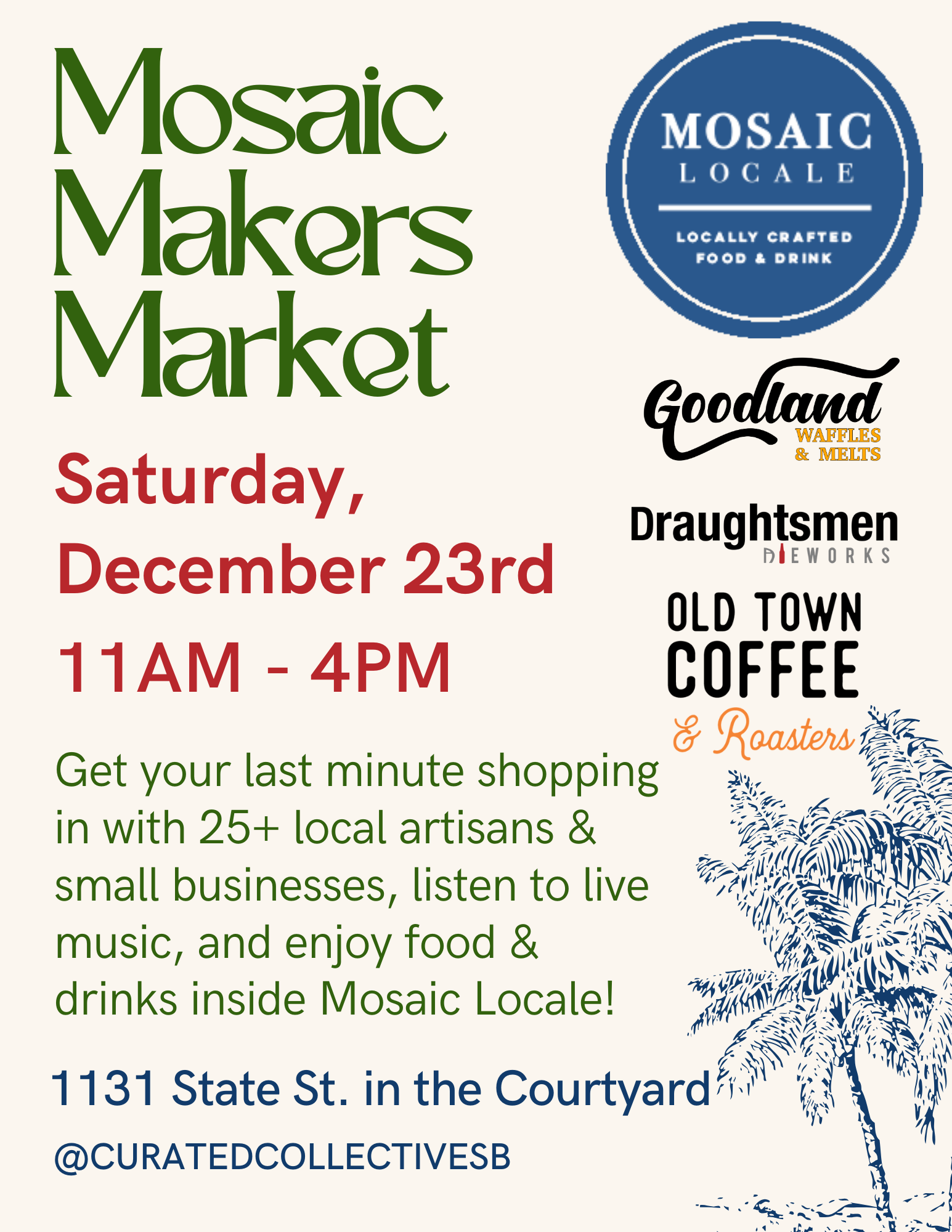 Last Call for Gifts! Join us on December 23rd at Mosaic Locale for our final market of the year – your ultimate destination for stress-free holiday shopping!