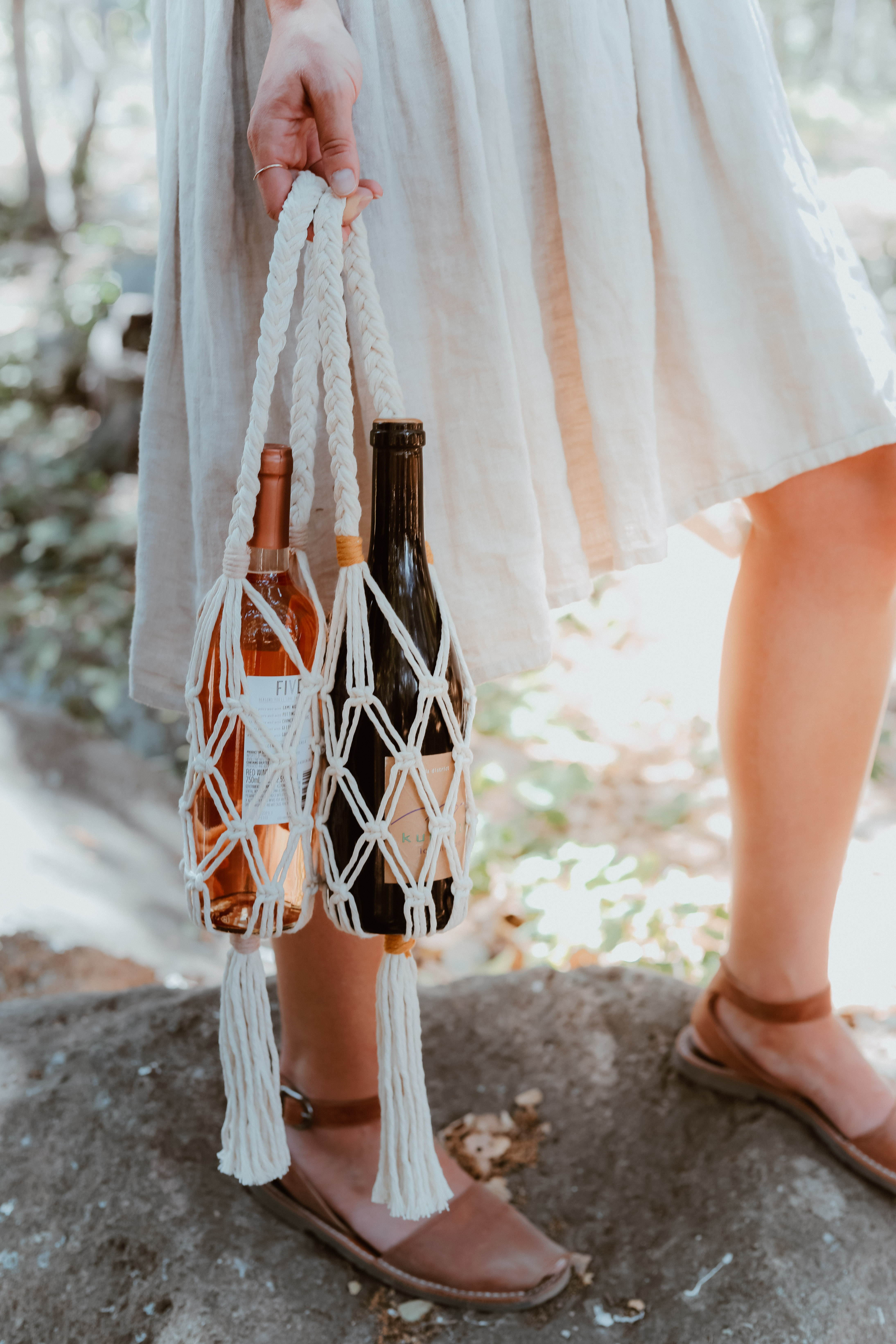 – A glass of wine to sip while you weave your wine tote to life
