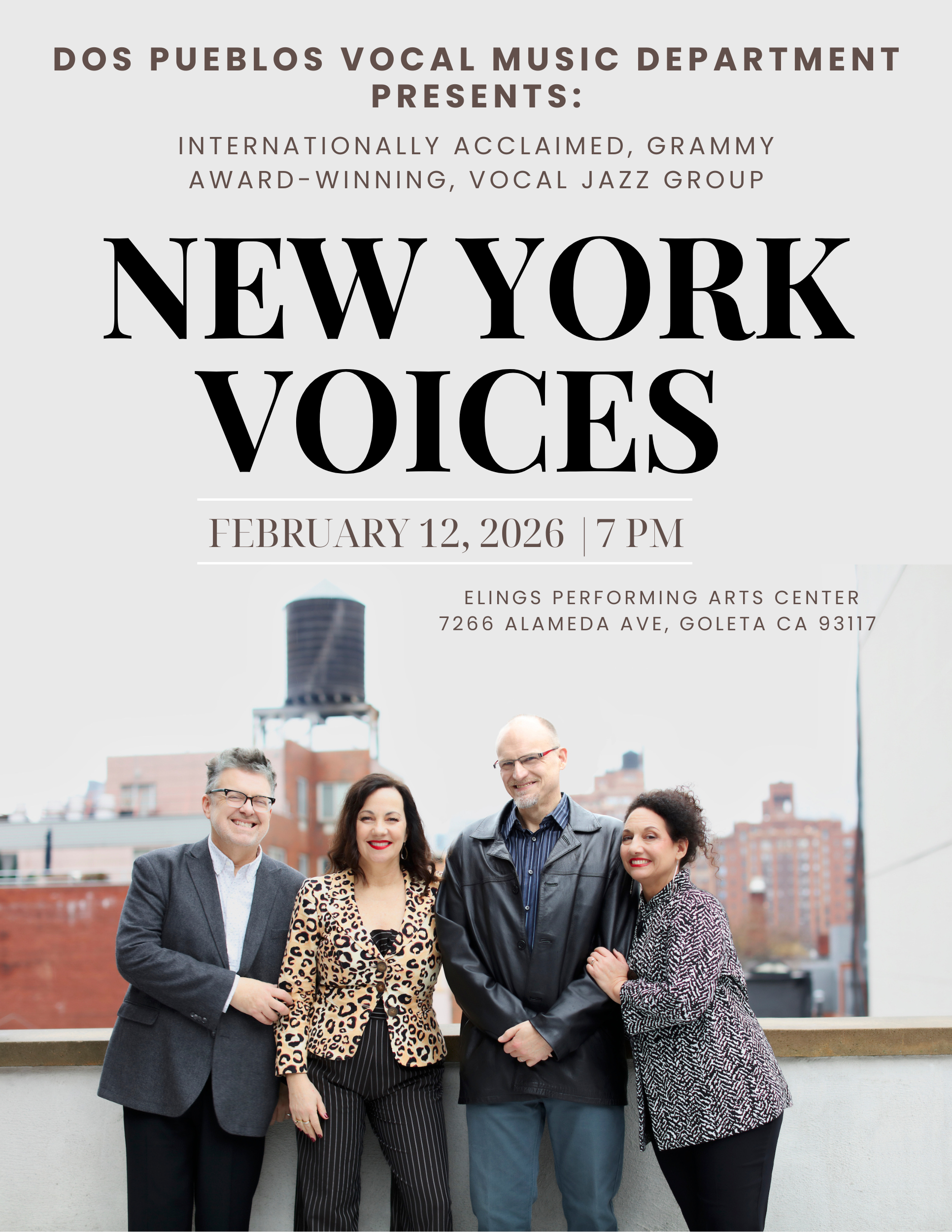 We are thrilled to welcome New York Voices to Dos Pueblos High School for a truly special evening of vocal jazz.