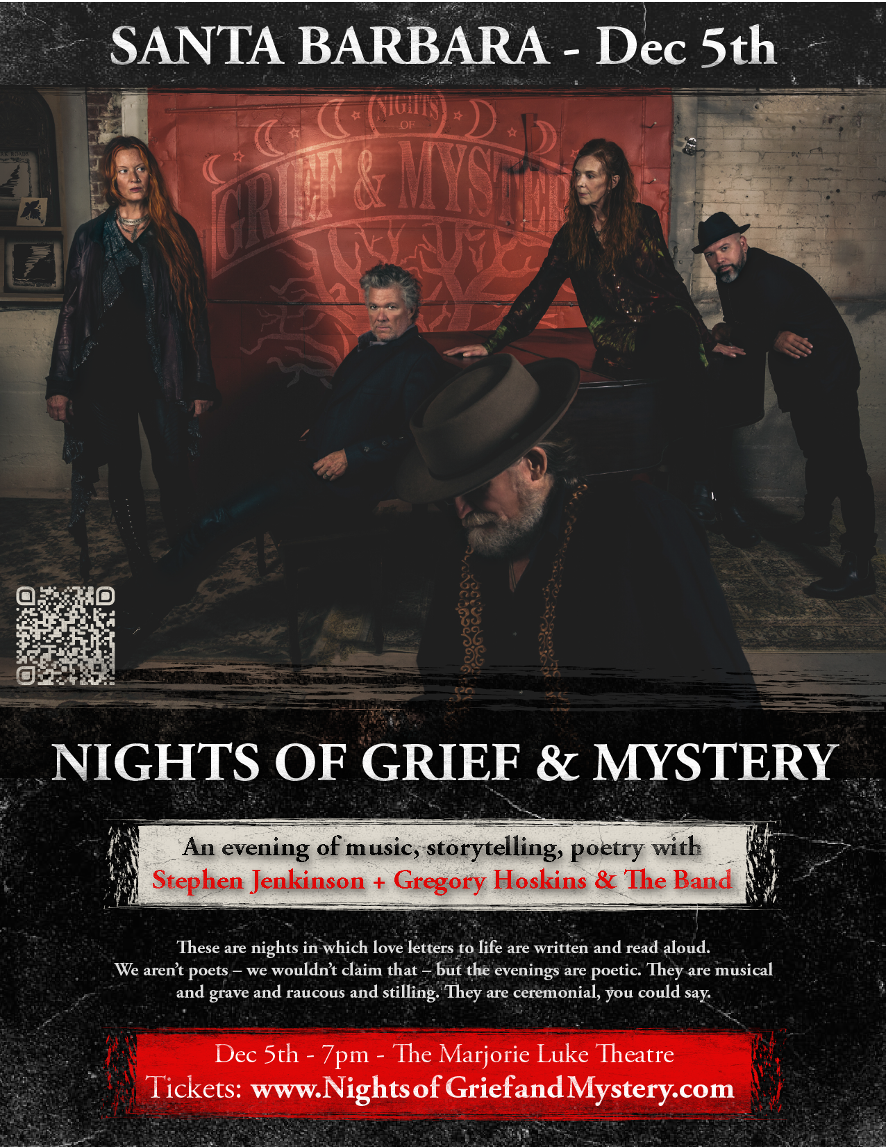Part concert, part story-telling, part testament of longing, part celebration of the wonder of life. Internationally acclaimed story-teller Stephen Jenkinson and blues troubadour Gregory Hoskins weave together music and word to create an evening of its own genre: A Night Of Grief And Mystery.