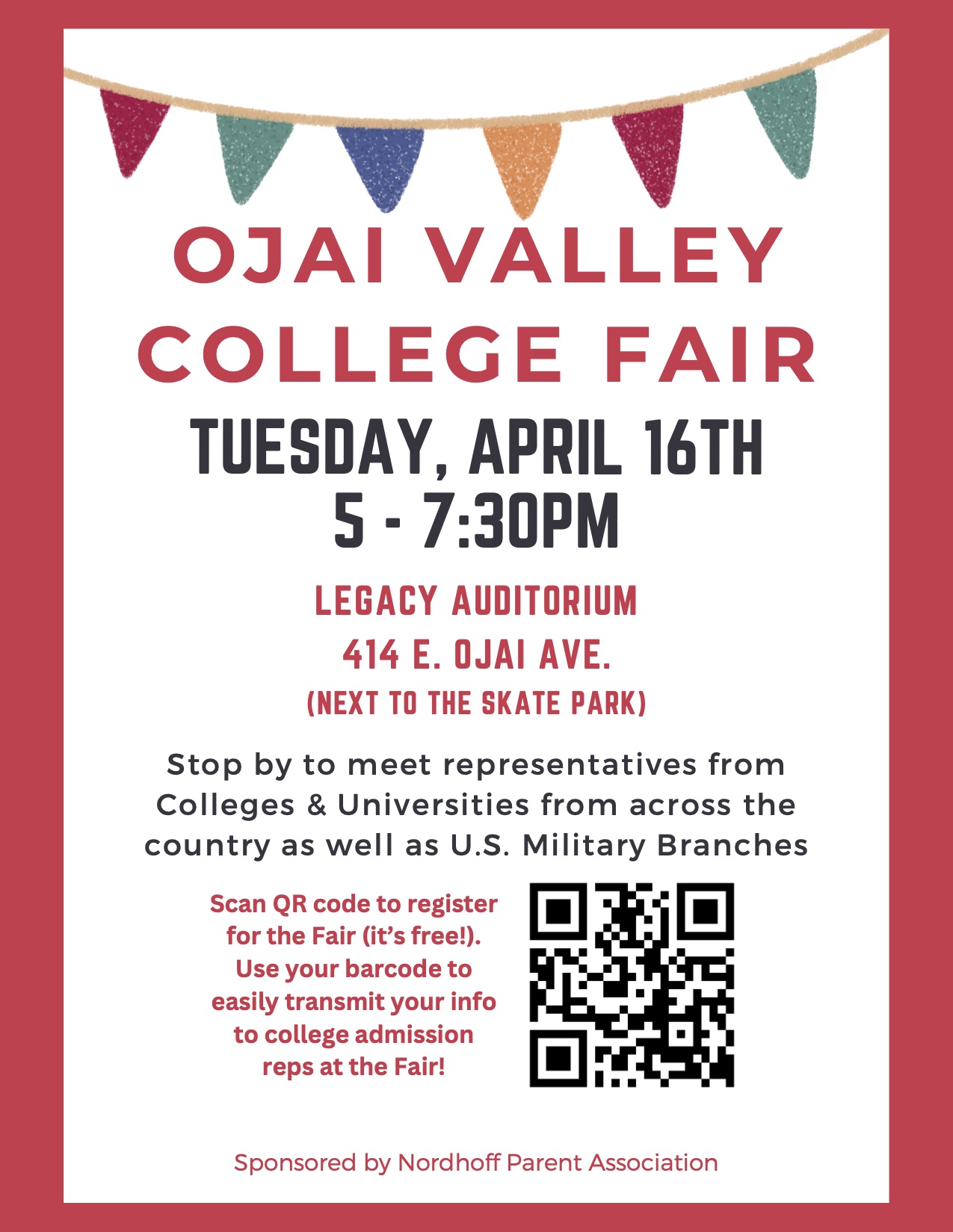 Free college fair for families in Ventura and Santa Barbara Counties. Scan QR code to register.