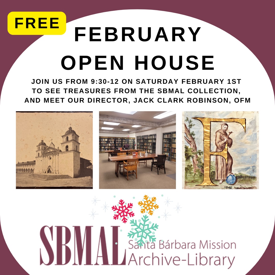 Join us at SBMAL to meet our Executive Director, Jack Clark Robinson, OFM with the occasional special guest, and to see several artifacts, books, and artwork from our collection.