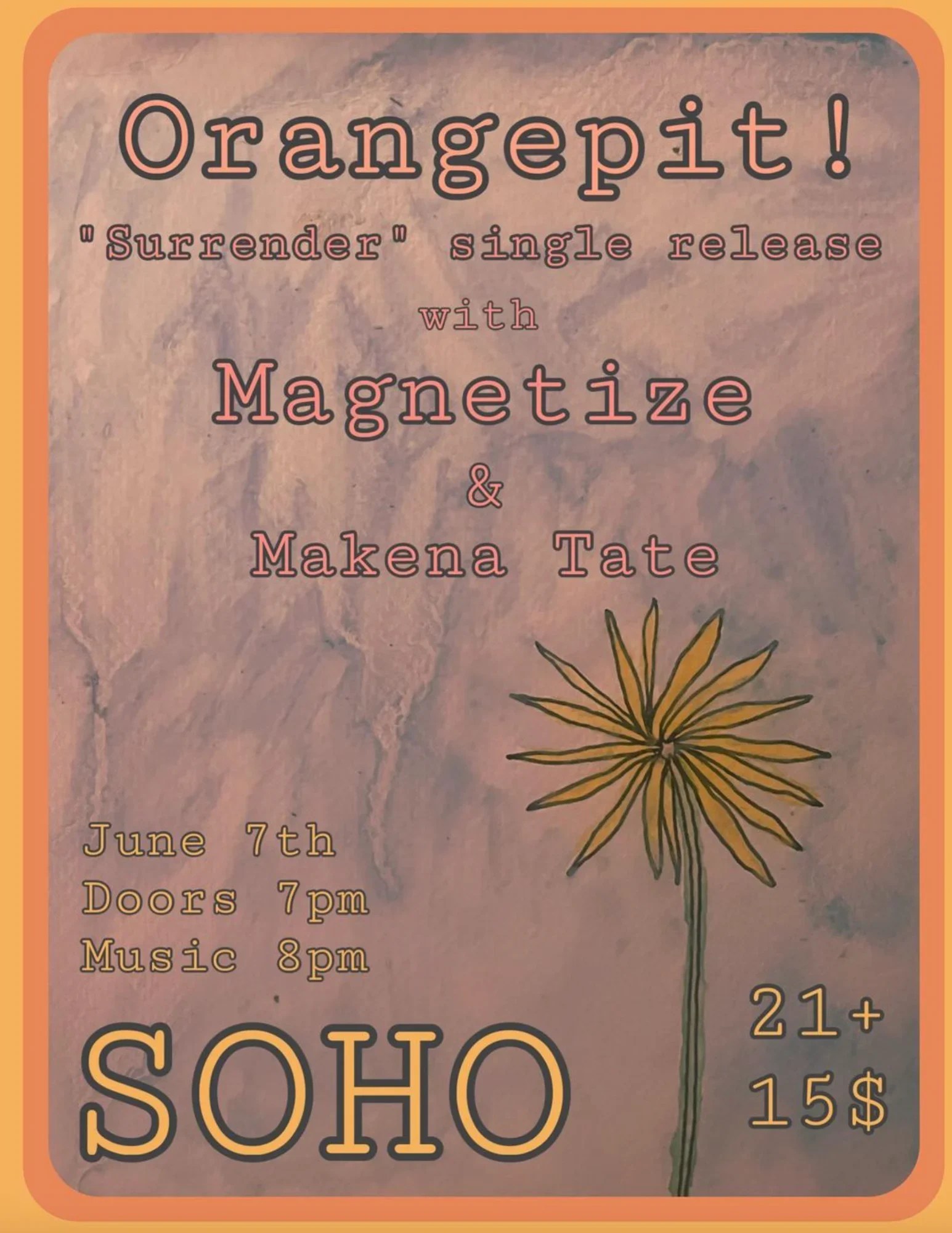 Come join us at SOhO to see local Isla Vista band Orangepit! perform alongside Magnetize and Makena Tate.