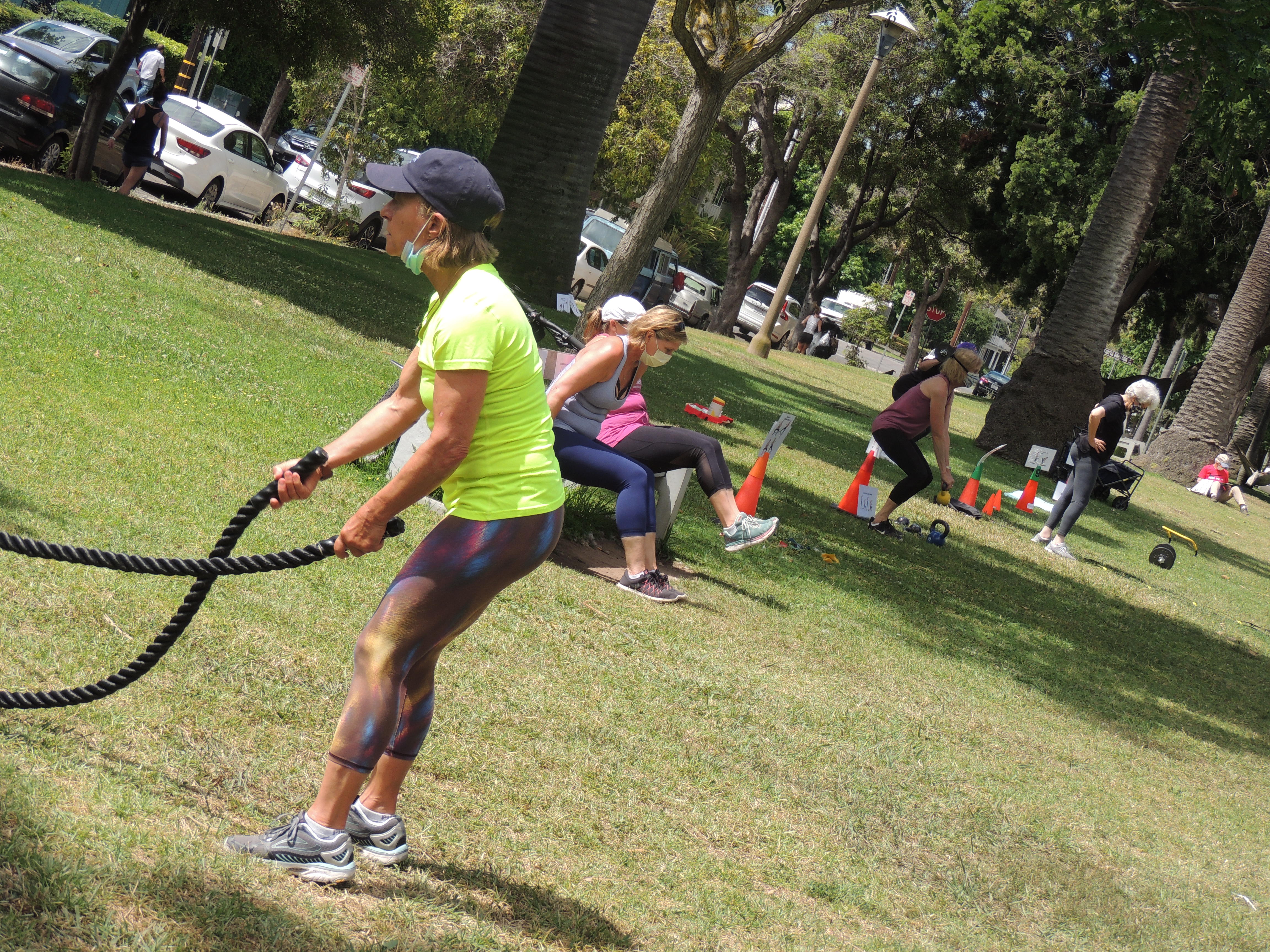 The variety of exercise choices makes this a sure bet for every age and fitness level. You’ll lift dumbbells & swing kettlebells, heft medicine balls & master stability balls, thump battle ropes & negotiate hurdles, run cones & bench barbells, step up to elevations & skim slide boards–and still more! Joining the instructor in a bun-busting squat routine or round of tabata between weight training intervals are options, too, but however you raise that heart rate, you’ll work at your own pace and ability, and at the same time—try just a little harder and go just a little more. Under the sun of lovely Santa Barbara, and the watchful eye of a credentialed Group X instructor, you’ll gain muscle, burn fat, and make fast friends with like-minded people—all while having a great time.