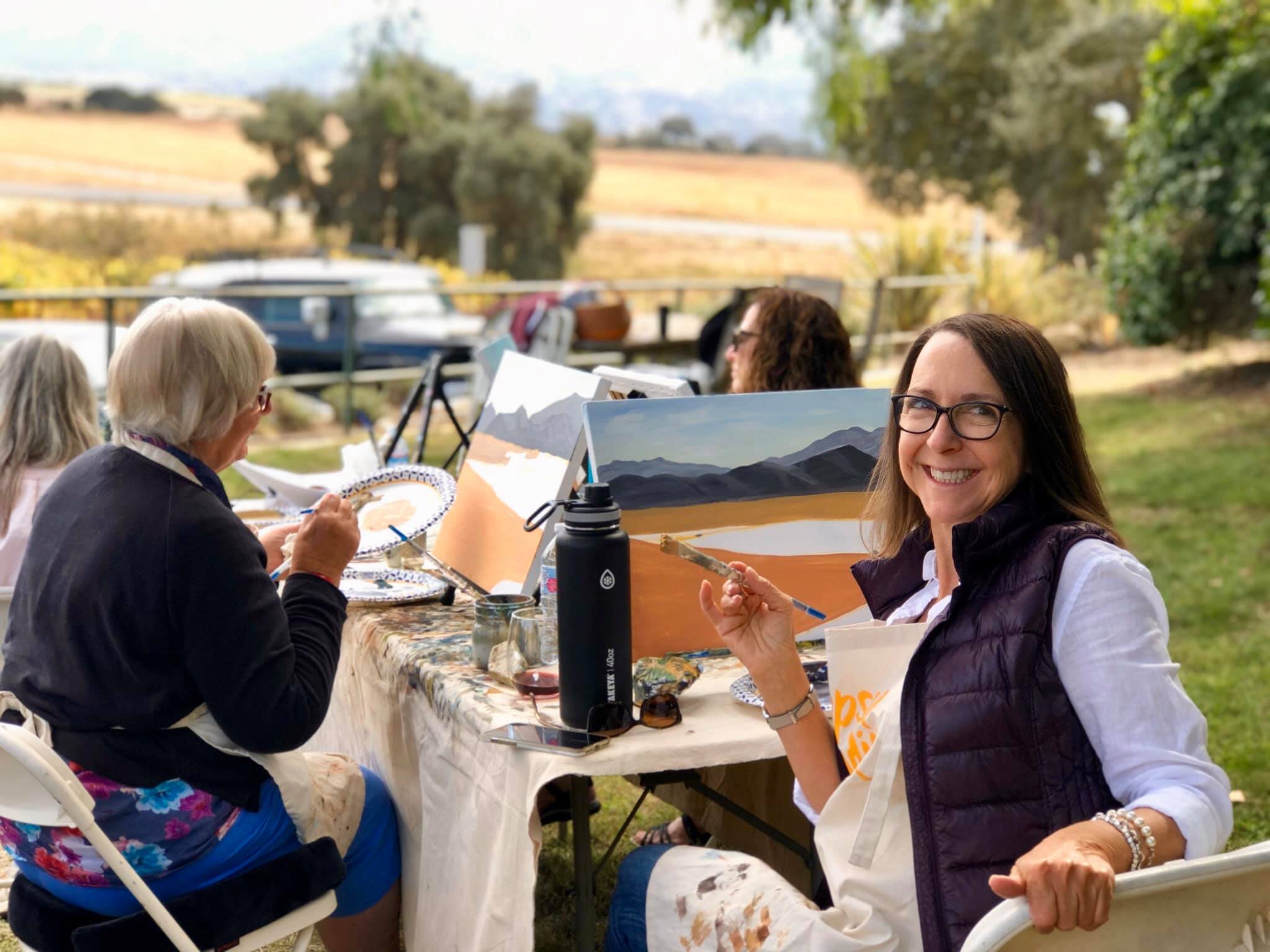 Our painting in the vineyard classes provides a beautiful, stress-free environment that will both inspire your creative spirit and indulge the wine-lover in you. Don’t consider yourself an artist just yet? Don’t worry. Our trained artist will walk you through the entire painting process step-by-step. No previous painting experience is necessary. You’ll be amazed at what you can create in just a few hours- even if you’ve never picked up a paintbrush in your life!