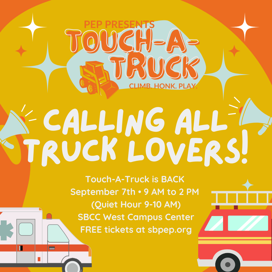 Mark your calendars for Sunday, September 7th because SB PEP’s 12th annual Touch-A-Truck is happening and it’s completely FREE! Kids get to climb on, explore, and learn about actual trucks, construction equipment, and public safety vehicles.