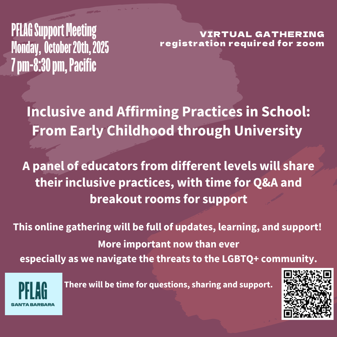 This is a zoom meeting, so pre-registration is required by emailing pflagsantabarbara@gmail.com.