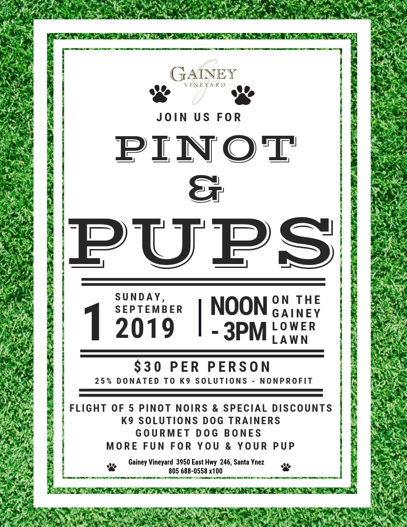 Paired with 5 Gainey Vineyard Pinot Noirs is an afternoon of fun for you and your pups!