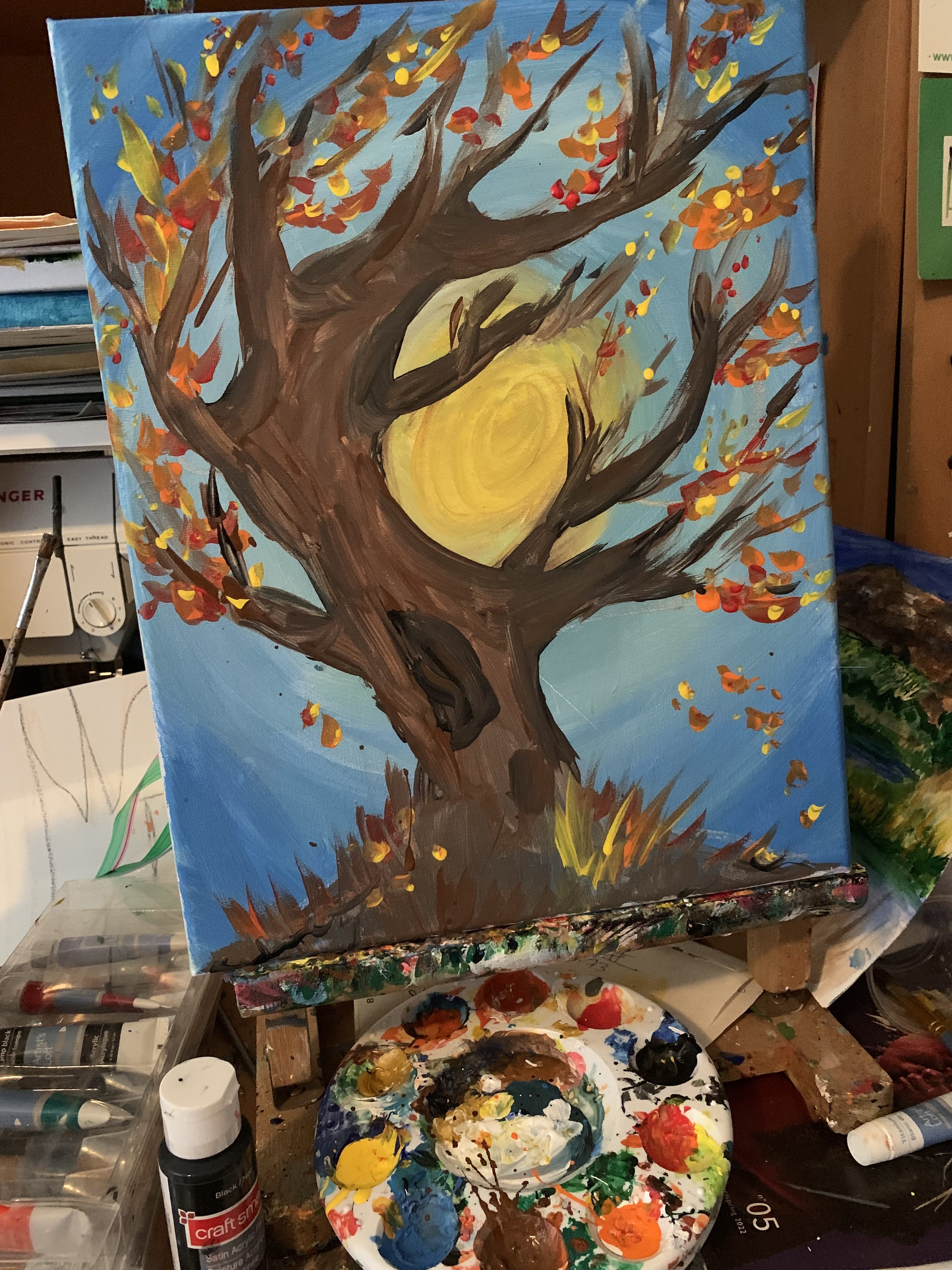Your ticket includes a pint of Santa Barbara Cider and a guided painting session with a fall theme.