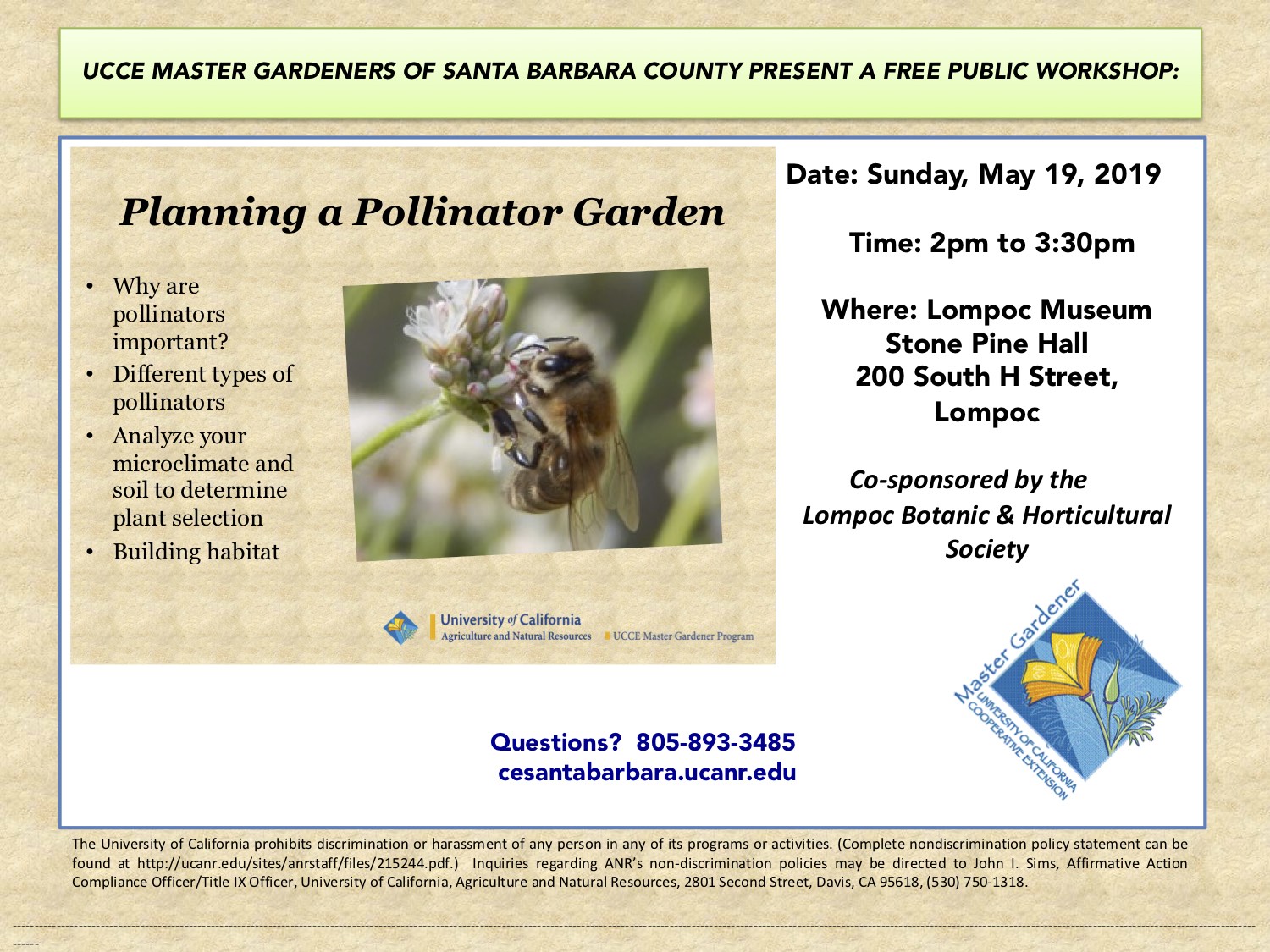 Co-sponsored by the SB County Master Gardeners and the Lompoc Valley Botanic and Horticultural Society.