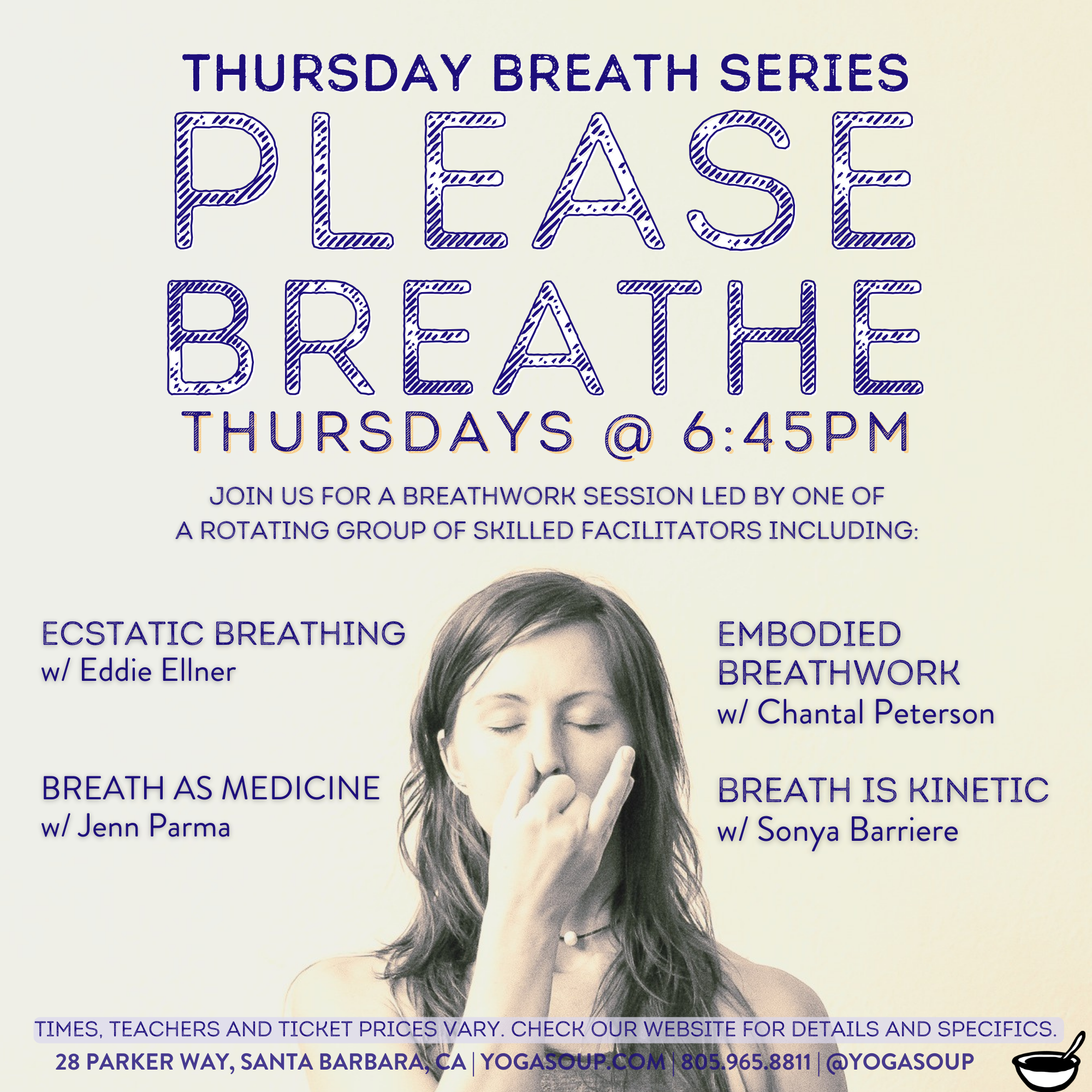 Join us at Yoga Soup on Thursday evenings for breathwork, guided by alternating practitioners with varying styles.