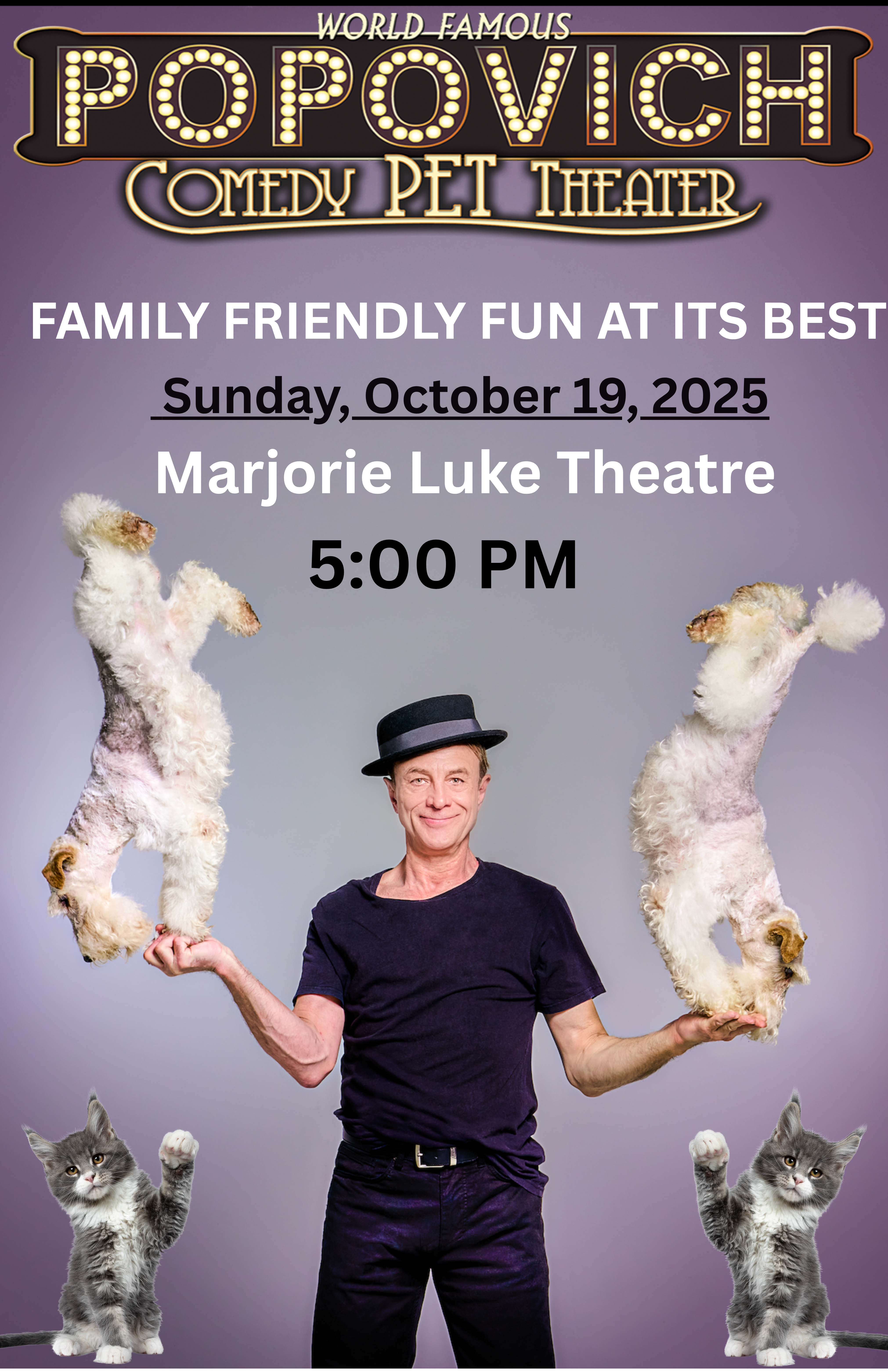 Las Vegas is talking – and Santa Barbara is about to see why. Fresh off the pages of Las Vegas Magazine, where it was hailed as “a delight for all ages in Las Vegas”, Popovich Comedy Pet Theater takes center stage at the Marjorie Luke Theatre on Sunday, October 19, 2025 at 5:00 p.m., for an unforgettable evening of laughter, wonder, and furry fun.