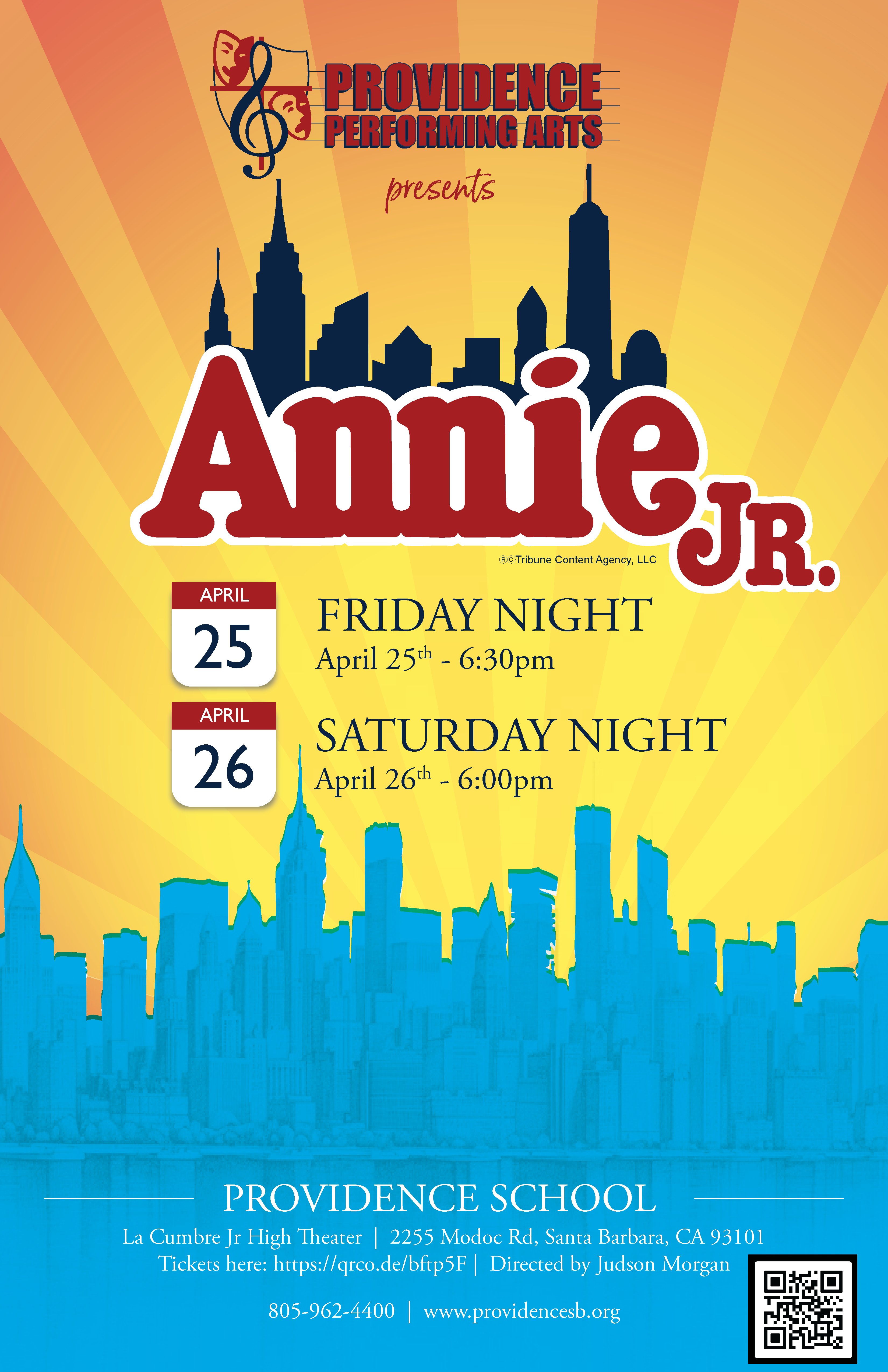 Join Providence School for this family-friendly evening! With unforgettable songs like “Tomorrow” and “Hard Knock Life,” Annie Jr. tells the timeless story of a hopeful young orphan who finds family in the most unexpected place. Featuring a joyful cast of Providence students from 4th to 12th grade, this heartwarming musical is full of laughter, charm, and catchy tunes. Perfect for all ages!