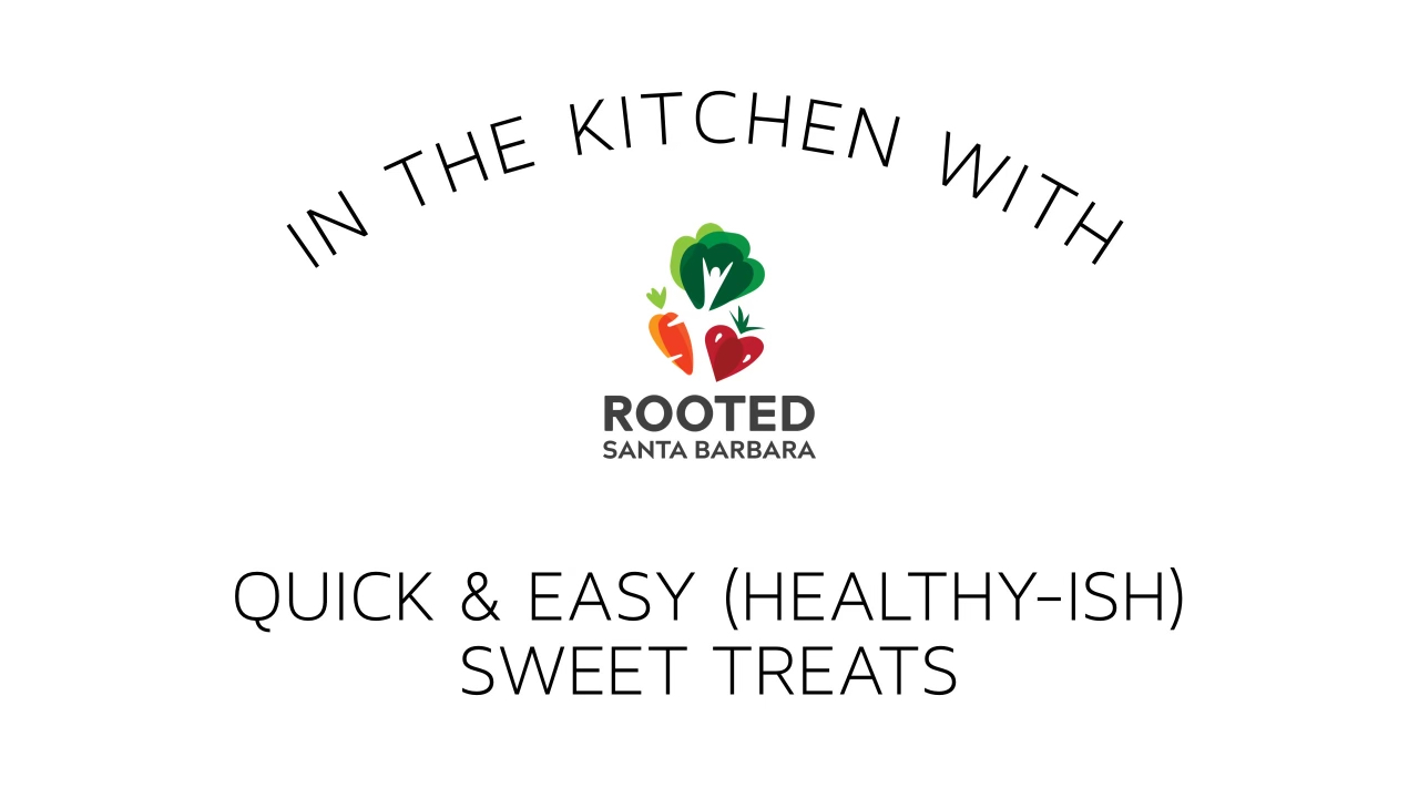 Quick & Easy (Healthy-ish) Sweet Treats is presented by Rooted Santa Barbara County. Rooted is a local nonprofit with the mission to optimize community health through whole food plant-based nutrition education and support.