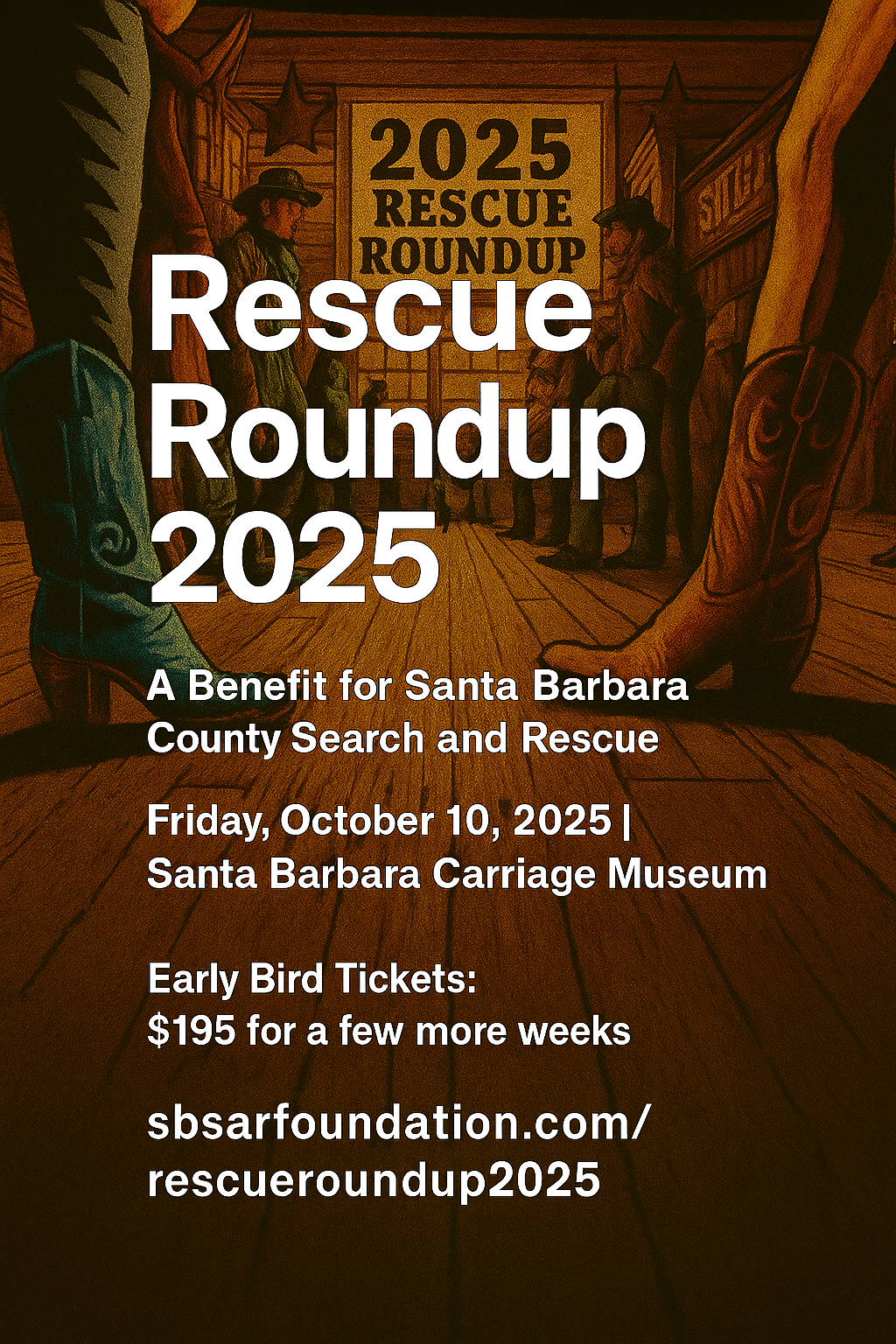 Join us for Rescue Roundup 2025, a community BBQ, auction, and live music fundraiser supporting the Santa Barbara County Search and Rescue (SBCSAR) team.