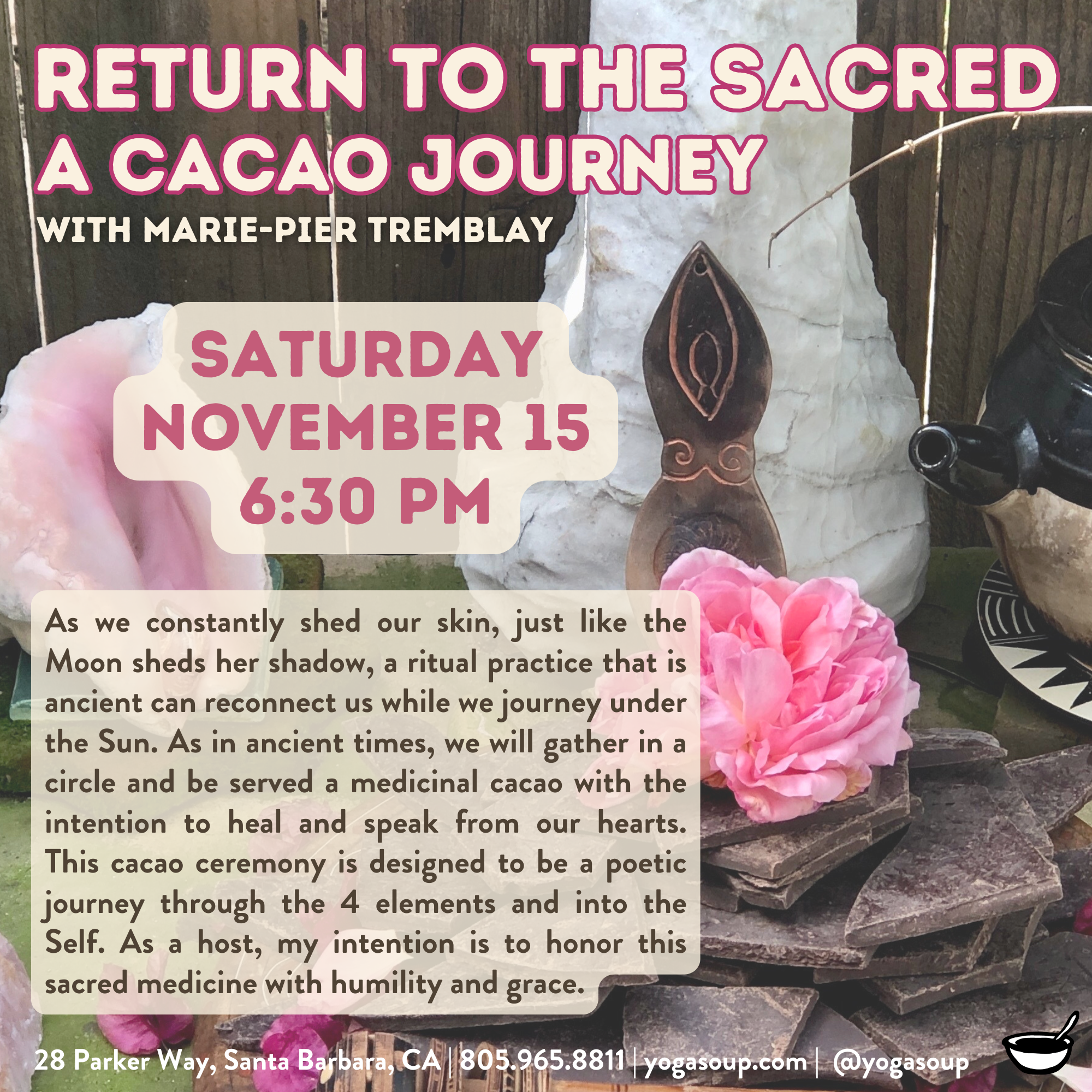 This cacao ceremony is designed to be a poetic journey through the 4 elements and into the Self.