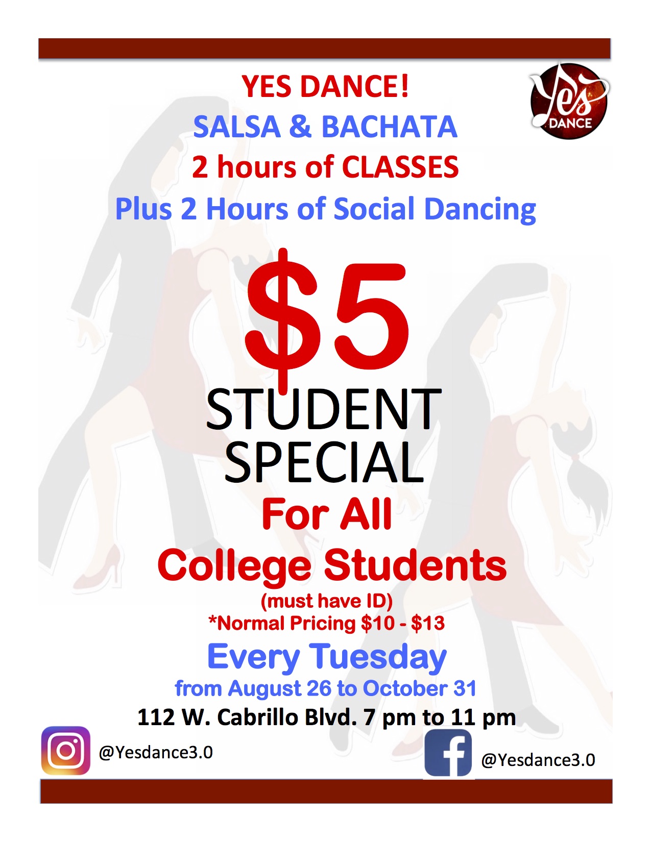 Each and every Tuesday, join us for a night of classes and social dancing. Best deal in town and best place to learn and practice all in the same night!!