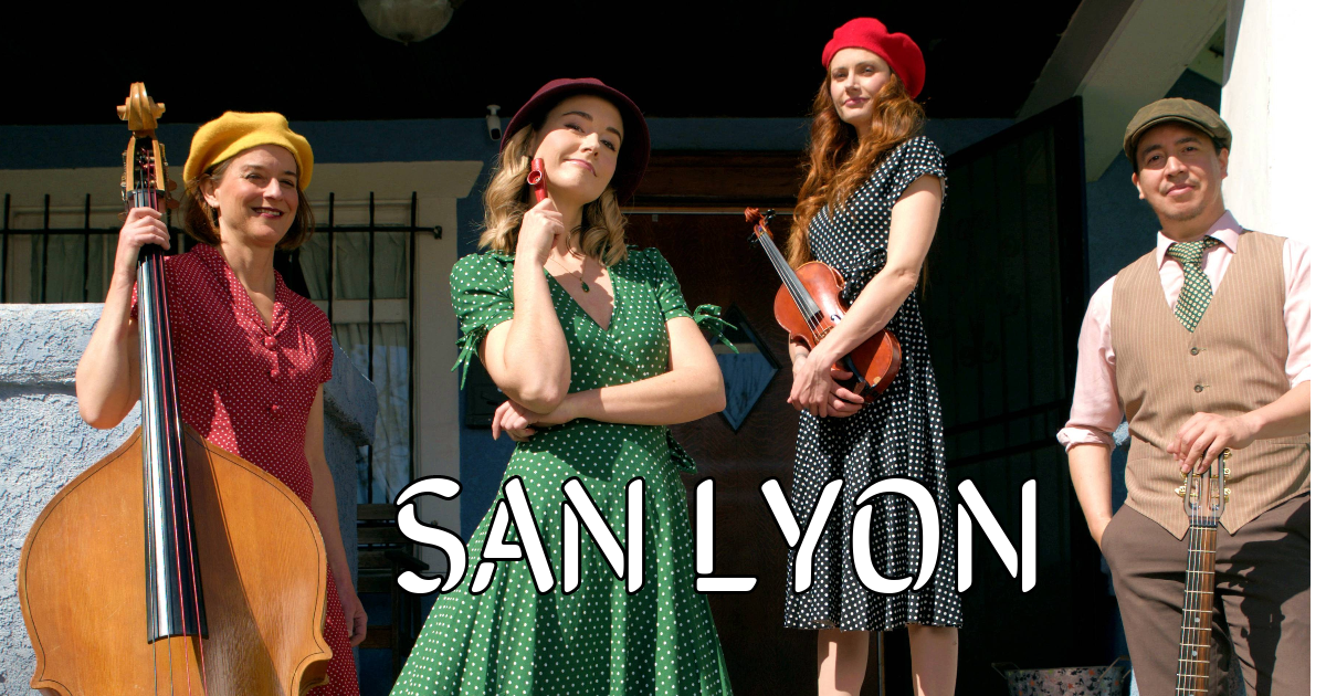 San Lyon is a swing jazz quartet based in Los Angeles. They have been playing together since 2019, specializing in jazz music from the early 20th century with a Parisian gypsy flare. They have released several albums and are continuing to write more original vintage sounding songs together.