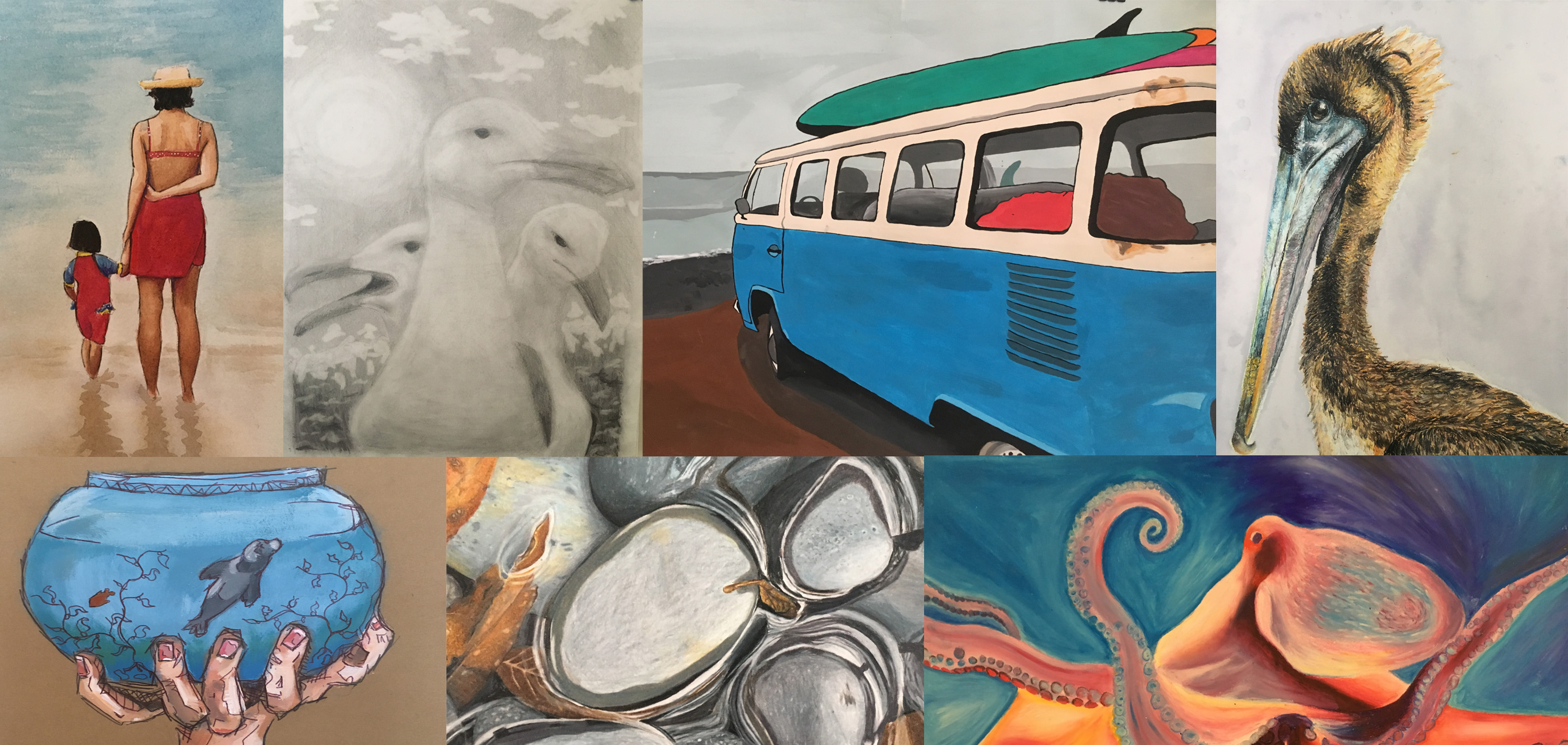 Channelkeeper is thrilled to host our 17th annual ocean-inspired Student Art Show, “What the Channel Means to Me.” Please join us for the opening exhibit, public reception and awards ceremony on Thursday, March 5th (1st Thursday) from 5-8 pm at the Jodi House Gallery at 625 Chapala Street in Santa Barbara. The award ceremony, where the student winners will receive awards and Channelkeeper’s cash prizes, will take place at 6:30pm. The goal of the show, which features artwork by high school students from across the South Coast, is to inspire local youth to create art that celebrates the natural beauty and biodiversity of the Santa Barbara Channel, and for their art to inspire others in our community. We hope to see you on March 5th – you won’t want to miss this free opportunity to check out some incredible ocean-inspired art created by local teens!