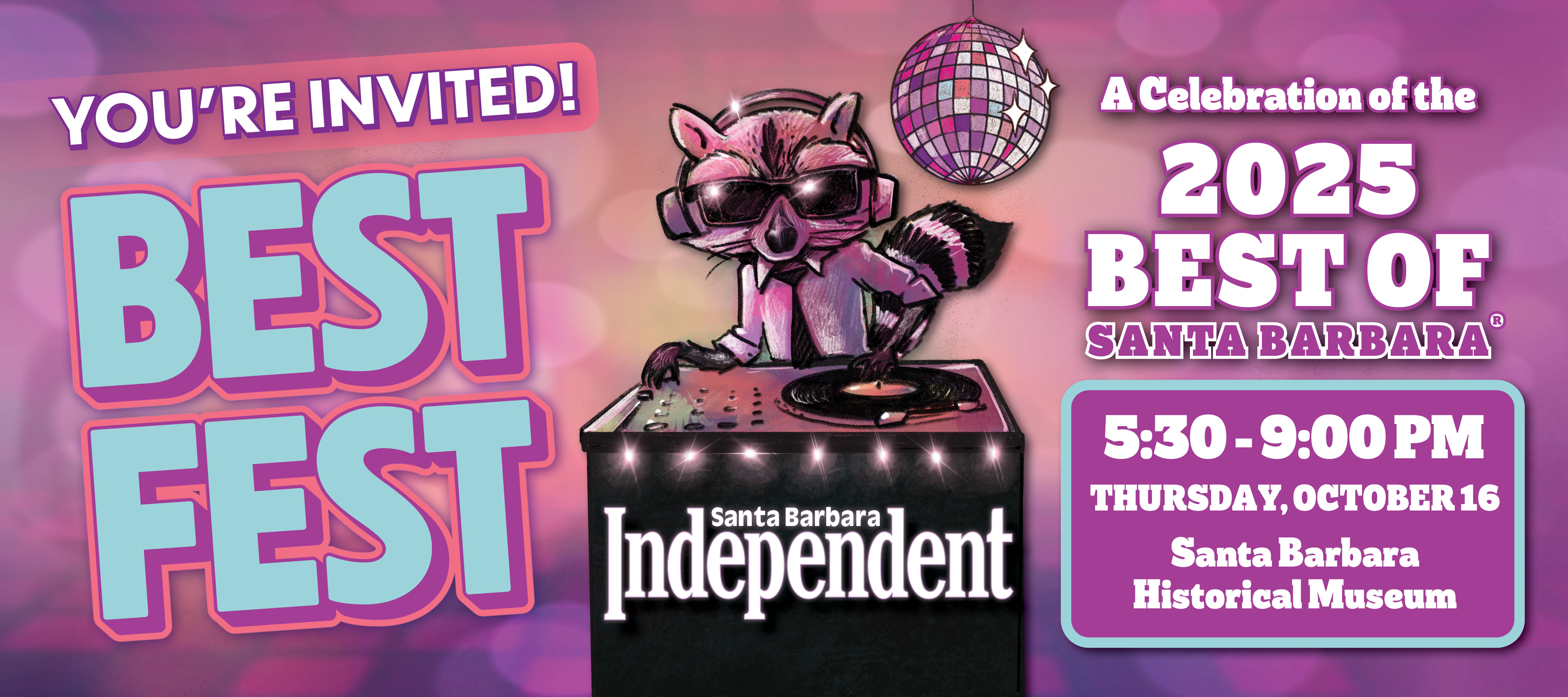 The Santa Barbara Independent, EJI Event Co., and the Santa Barbara Historical Museum officially invite you to mingle and boogie with the finest folks in town! Mark your calendars and join us in celebrating the 2025 Best of Santa Barbara® on Thursday, October 16, 5:30-9 p.m. at the Santa Barbara Historical Museum.