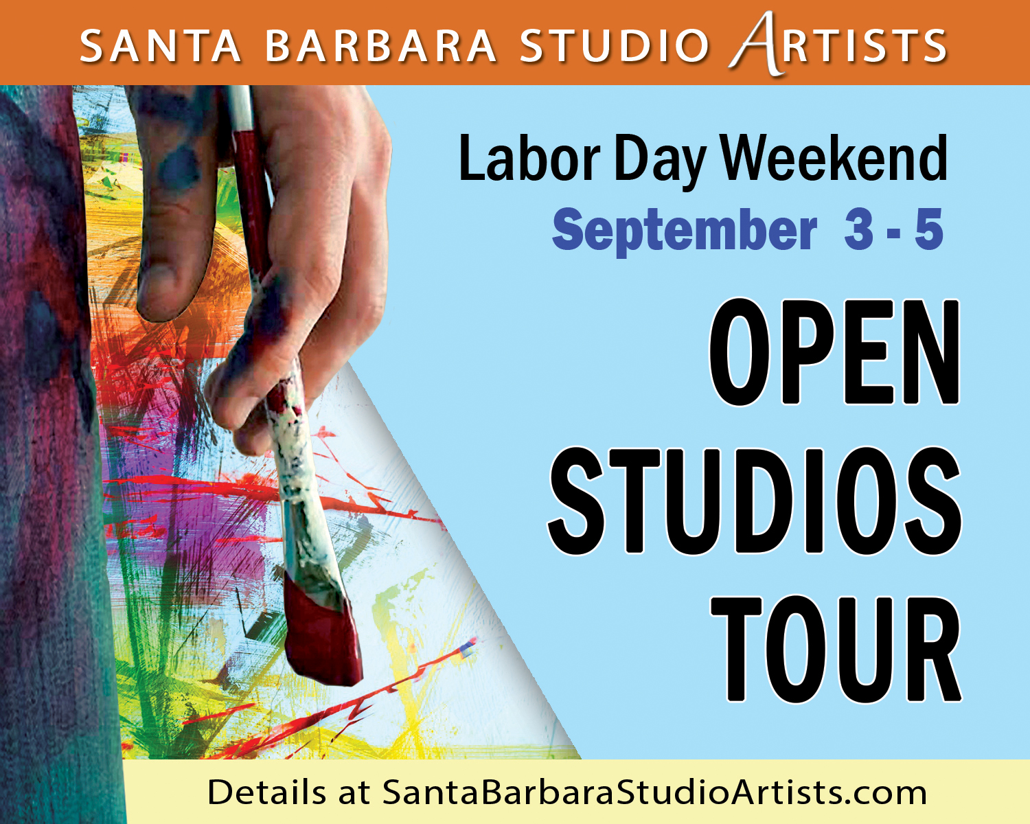 This year’s Santa Barbara Studio Artists’ Open Studios Tour takes place Labor Day weekend, beginning with a reception from 5:00 – 8:00 p.m. on Friday, Sept. 2, at the Community Arts Workshop, 631 Garden Street (which is where tour maps are also available). Participating studios will be open from 11 a.m. – 5:00 p.m. on Saturday and Sunday; and 11 a.m. – 2:00 p.m. on Monday. Tickets are $25 (children under 12 free) and available at the Community Arts Workshop (during the tour weekend only), or online (www.santabarbarastudioartists.com). All ticket sales benefit the Alpha Resource Center of Santa Barbara and Slingshot Art Gallery, a non-profit organization whose mission is to empower individuals with intellectual and developmental disabilities (IDD) by supporting families, creating opportunities, and fostering belonging.