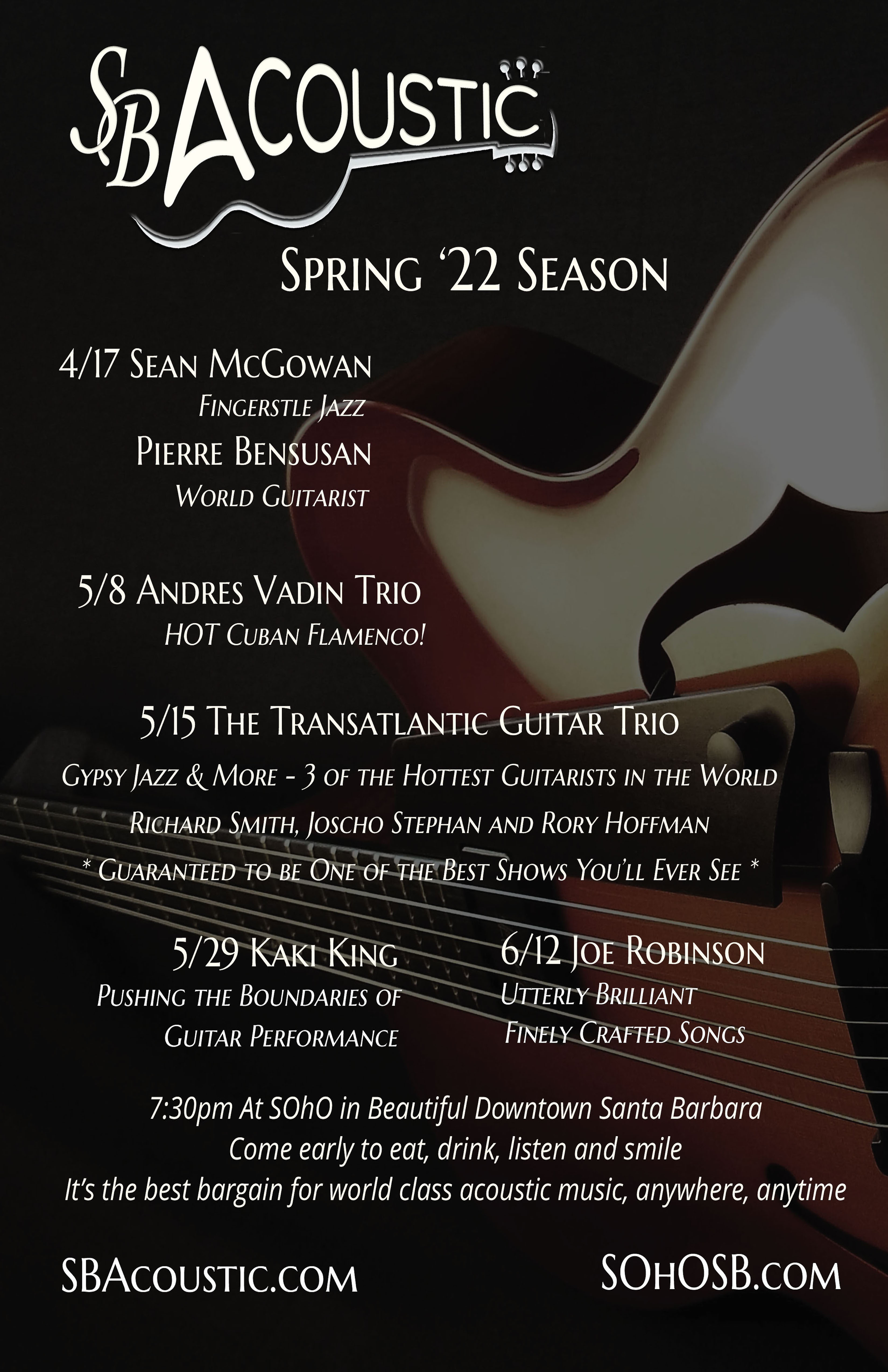 Santa Barbara Acoustic presents an ongoing series of live international acoustic music concerts & annual handmade guitar exhibition.