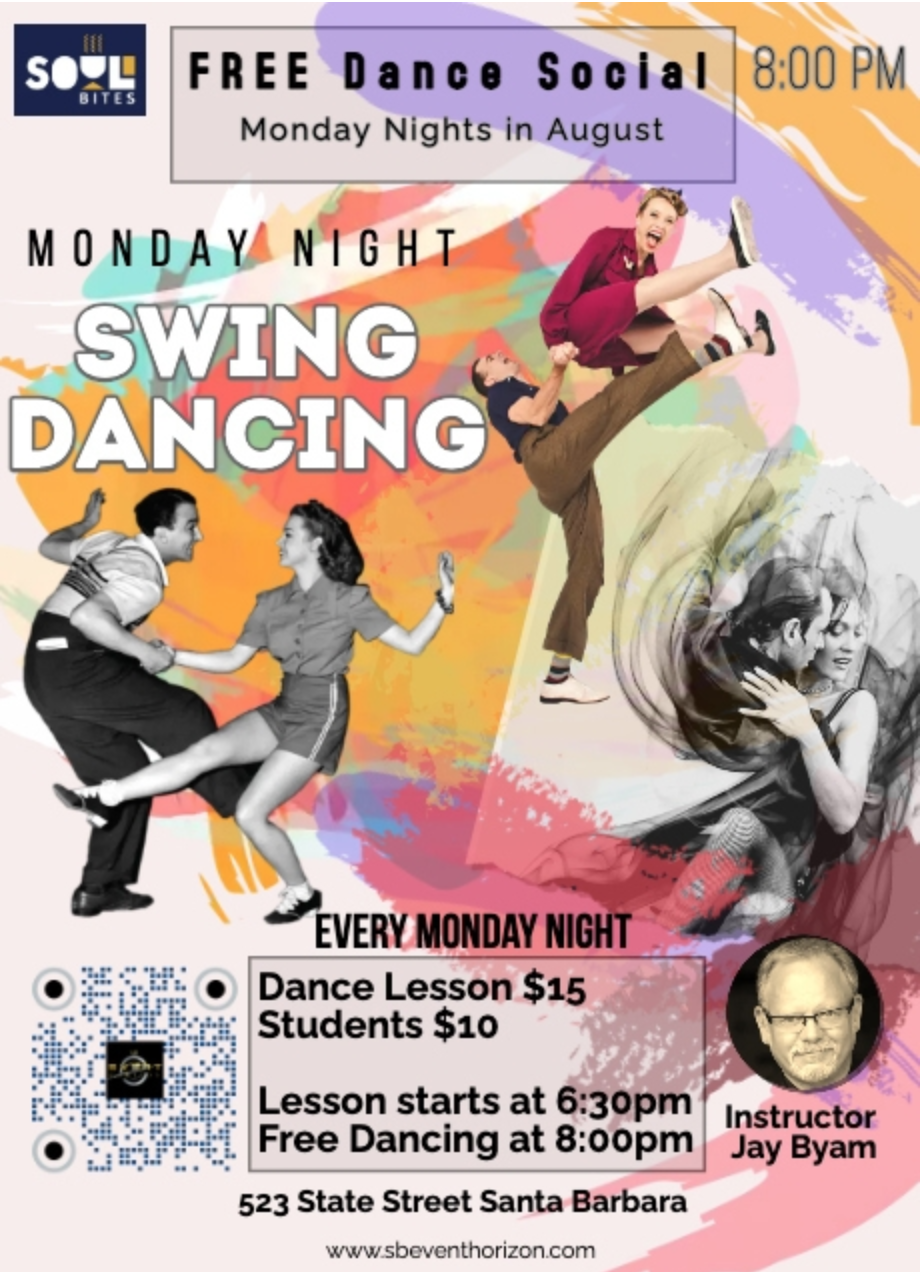 Get ready to swing, sway, and jive the night away at SB Event Horizon’s Swing Night! Every Monday Night, we transport you back to the golden era of dance with our electrifying Swing Night event. Step into the world of East Coast Swing, Jive, Balboa, Lindy, West Coast Swing, Blues and Fusion, and experience the infectious rhythms that defined a generation.