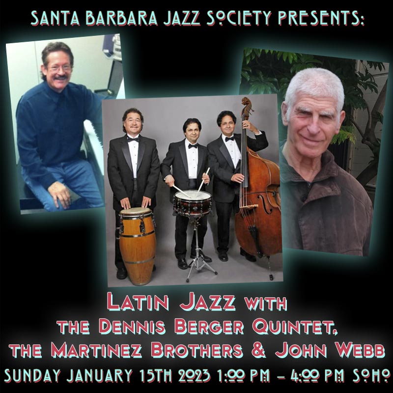 Many of you have been asking when we were going to feature Latin Jazz. Well, that time has arrived! On Sunday, January 15, we present the Dennis Berger Quintet with the Martinez Bros and John Webb. Both John and Dennis are fine pianists as well as top saxophone players and plan to double on both. Ruben Martinez plays bass and flute with brothers Lorenzo on percussion and Rene on drums. If you like bossas, mambos and more, you’ll want to be there. We can promise that it will be an exciting afternoon of Latin Jazz!