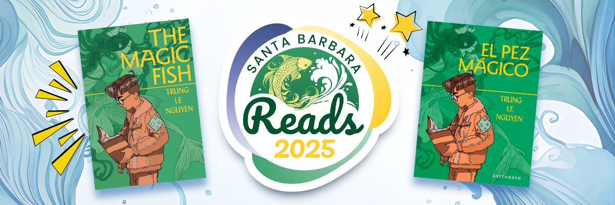 Pick up your free copy of the SB Reads title and graphic novel The Magic Fish by Trung Le Nguyen, contribute to a community art piece with local artist Veronica Sanchez, and register for upcoming SB Reads’ book clubs, workshops, and special events!