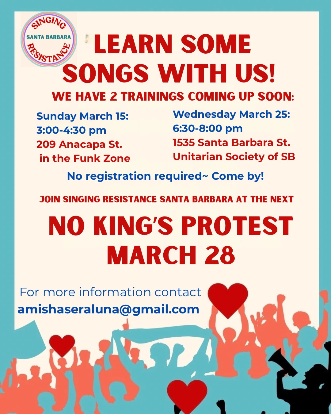 SB singing resistance invites you to come and learn some songs of love, hope, justice and peace with us!