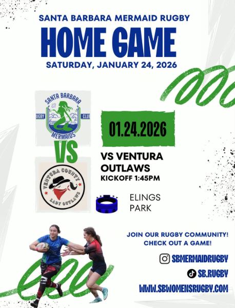 Come support our local women’s rugby team, the Santa Barbara Mermaids, as they compete against Ventura in an 80-minute match. The womens’ game will be followed by the mens’ game, the Santa Barbara Grunions against Ventura.