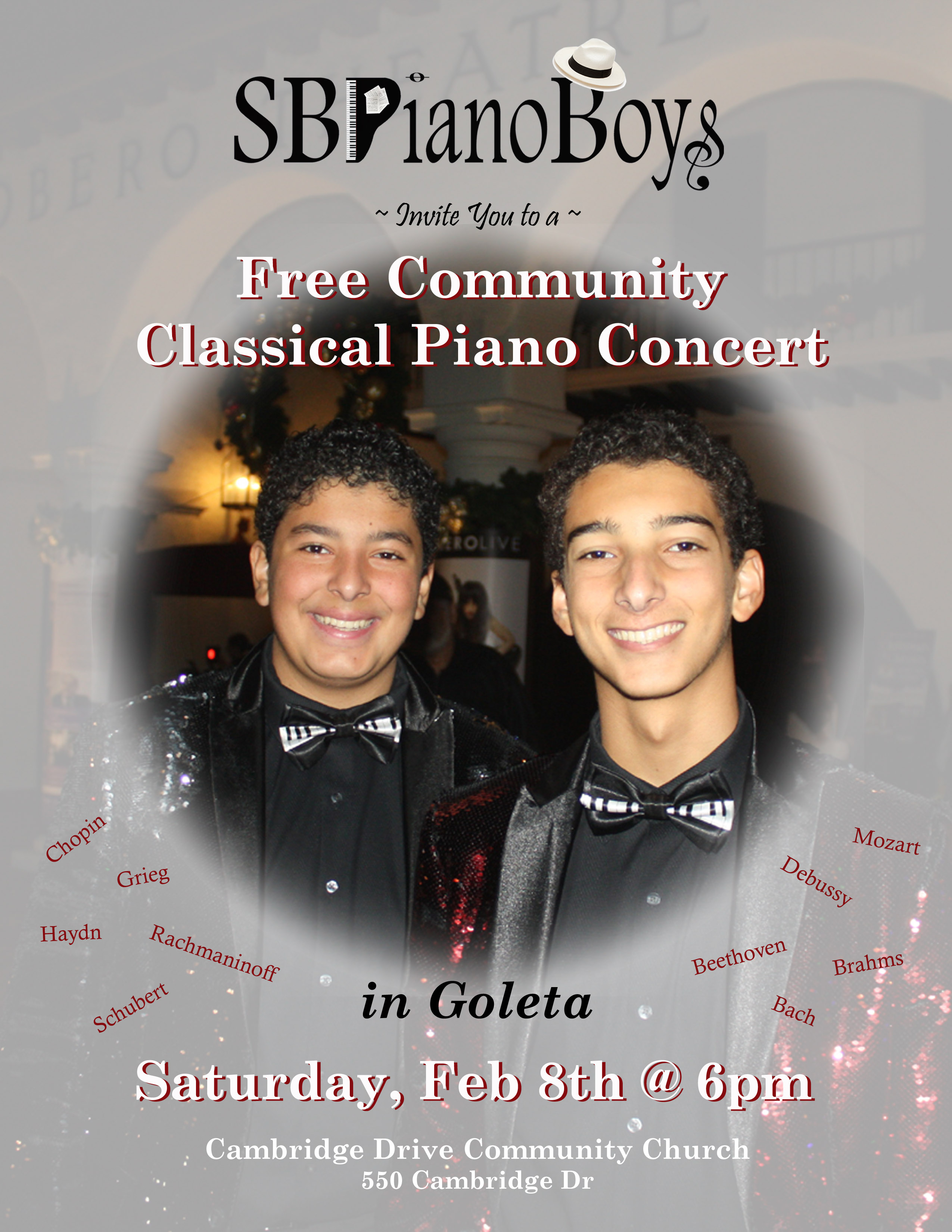 In celebrating 5 years of entertaining in Goleta, and answering to the requests of many locals who couldn’t attend our concert last week in Santa Barbara, we decided to do a free performance at this special venue where we got our start 10 years ago with many recitals.