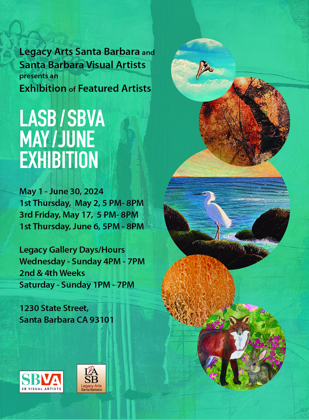 Please join SBVA @ Legacy Art Gallery for our 3rd Friday May 17 Reception from 5 – 8 PM.