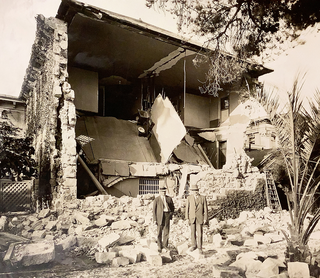 Historic photo of 1925 earthquake damage to the Santa Barbara County Jail from Santa Barbara Historical Museum, Gledhill Library, with special thanks to Head Archivist Chris Ervin.