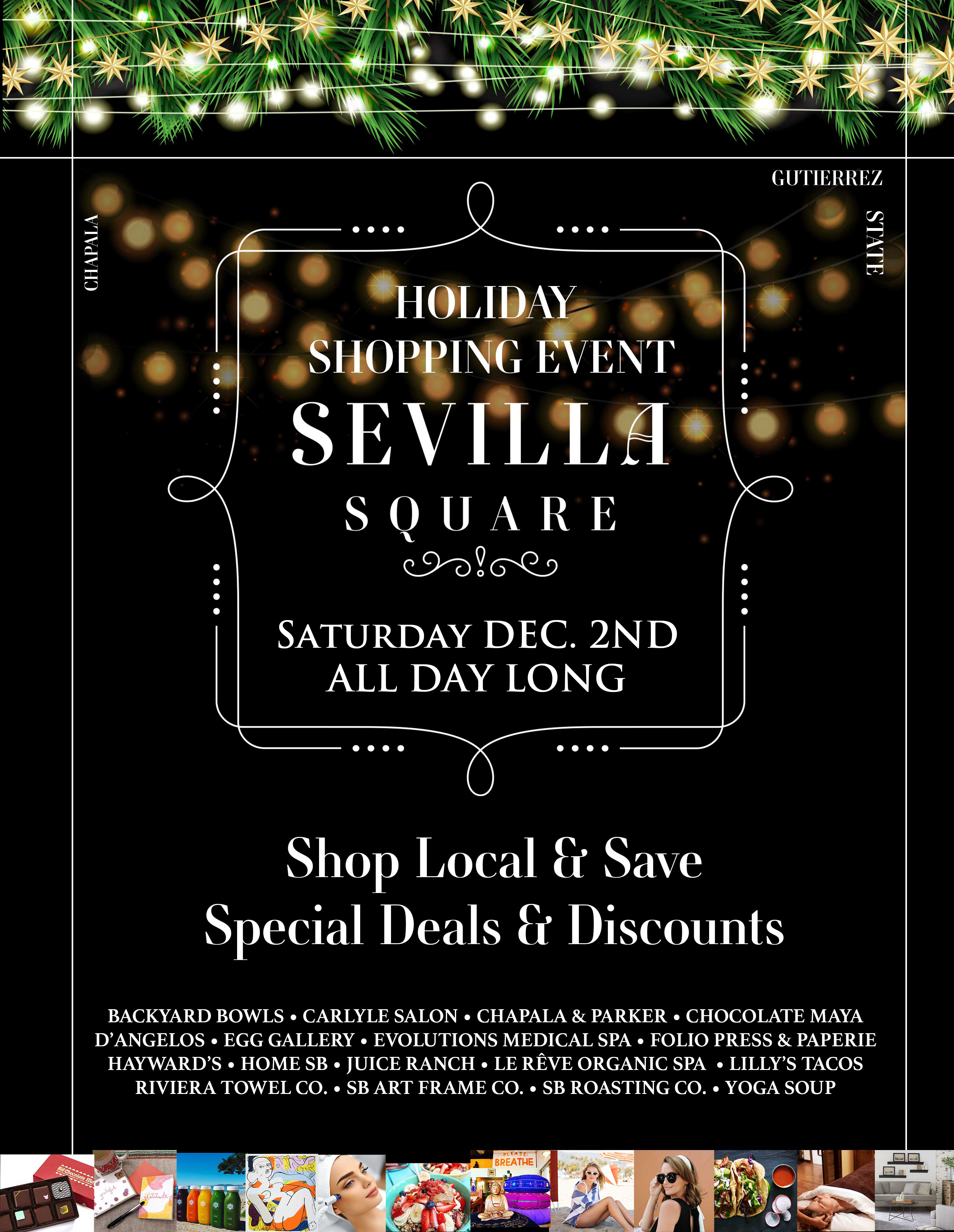 SEVILLA SQUARE’S 8th ANNUAL – LOCAL SHOPPING EVENTWhen – SAT. DECEMBER 2nd – (All Day)