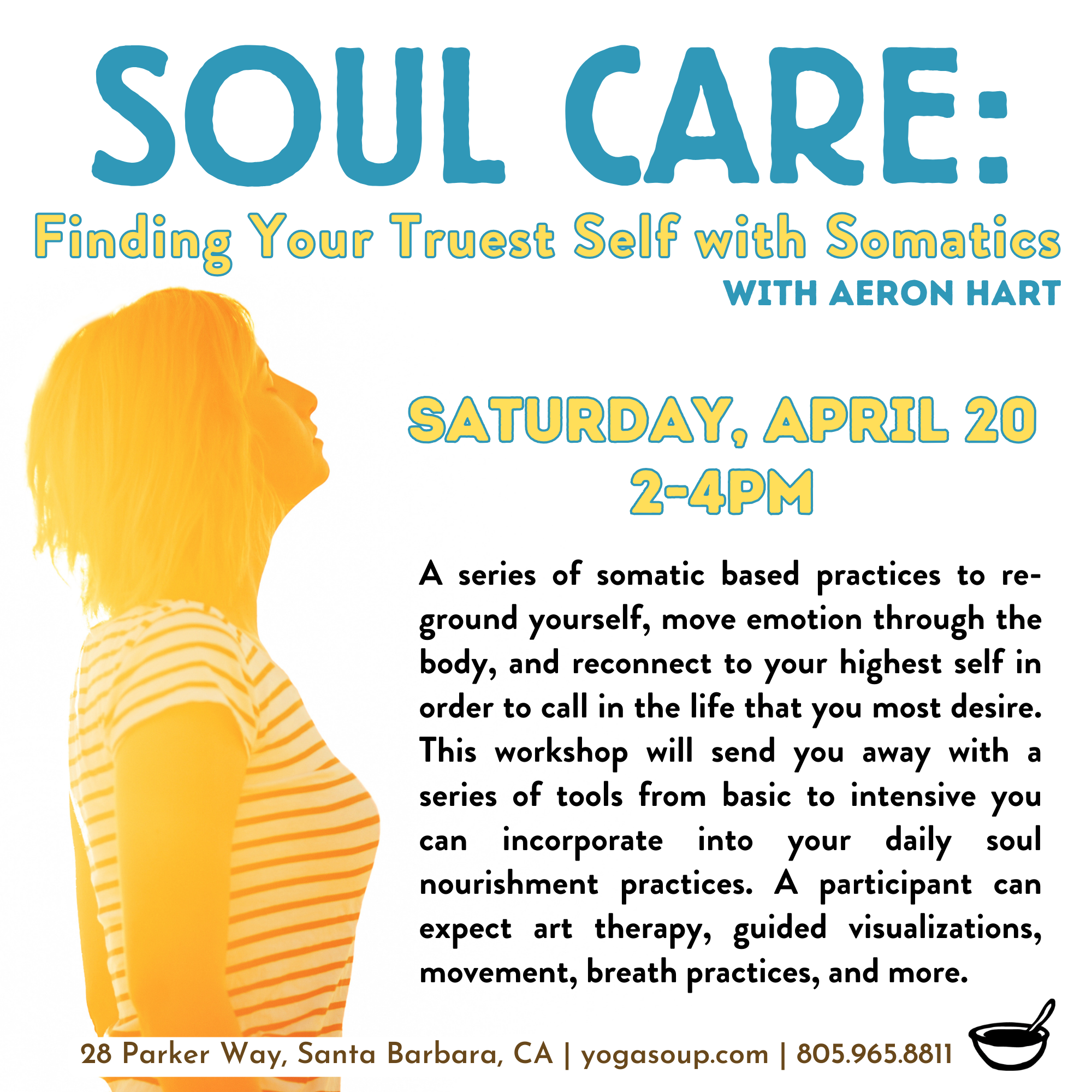 A series of somatic based practices to re-ground yourself, move emotion through the body, and reconnect to your highest self in order to call in the life that you most desire. This workshop will send you away with a series of tools from basic to intensive you can incorporate into your daily soul nourishment practices. A participant can expect art therapy, guided visualizations, movement, breath practices, and more.